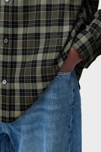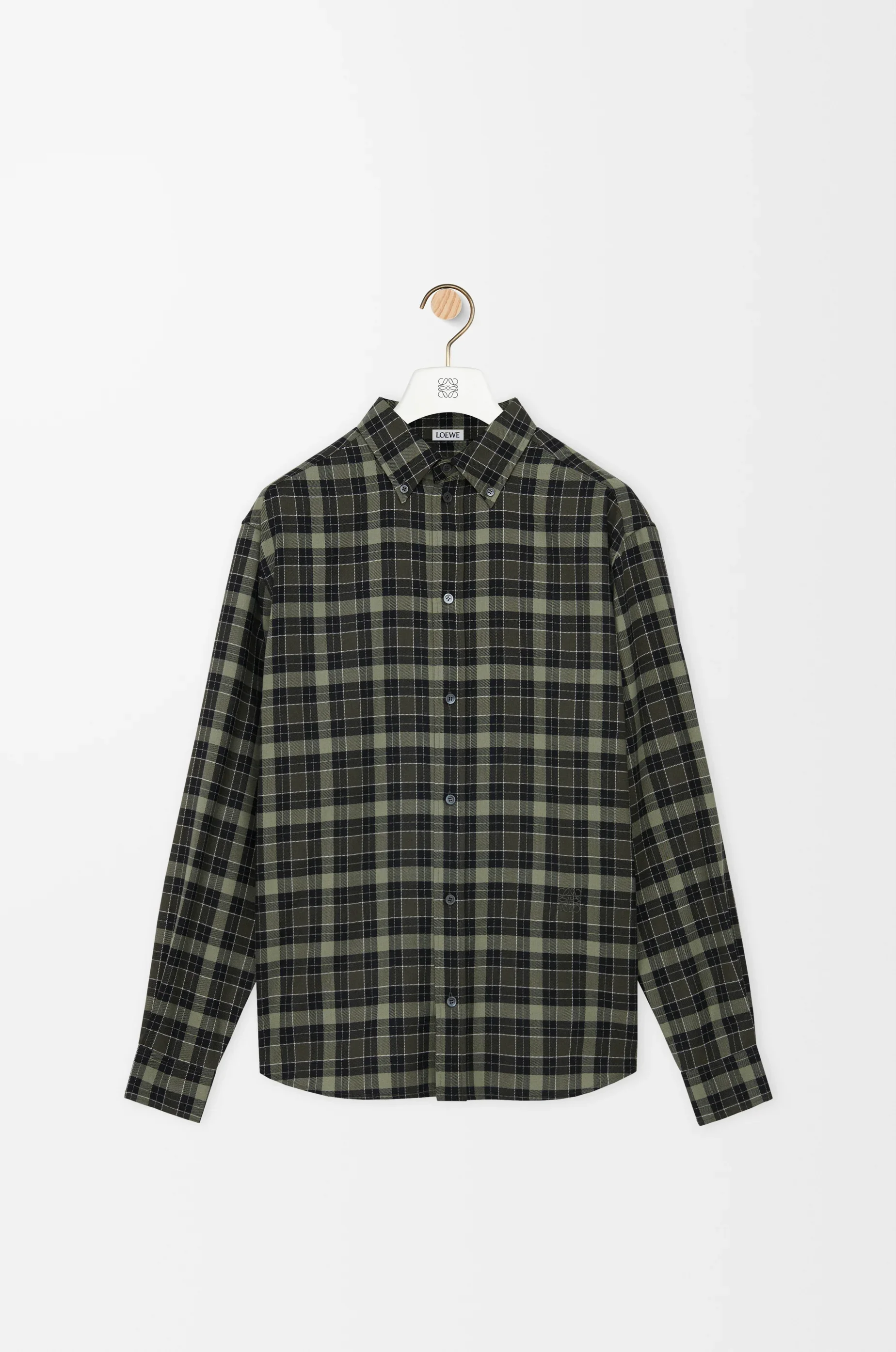 Shirt in lightweight wool blend tartan check. - Regular fit, regular length - Button down collar - Button front fastening, buttoned cuffs - Anagram embroidery placed at the front Colour: Khaki/Black Main material: Polyester/Wool Weight: 0.4 kg Made in: Italy Materials & care Main Material: 55% polyester 45% wool