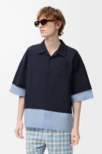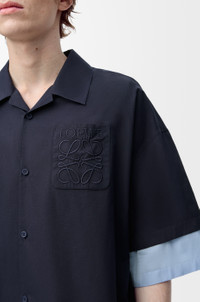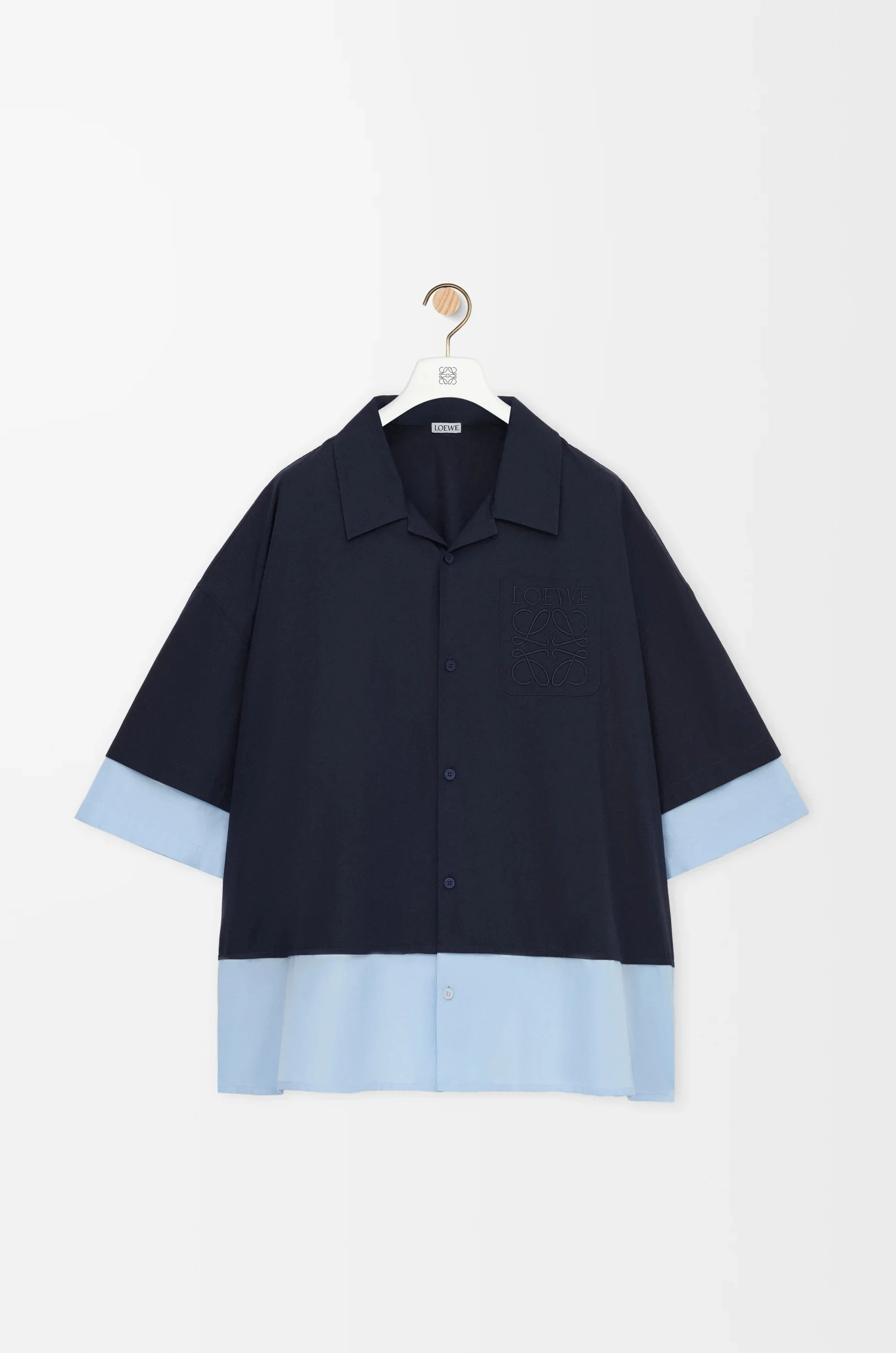 Shirt in lightweight cotton poplin featuring a trompe l’oeil construction. - Relaxed fit, regular length - Camp collar - Button front fastening - LOEWE Anagram embroidery placed on the chest patch pocket Colour: Dark Navy/Light Blue Main material: Cotton Weight: 0.25 kg Made in: Italy Materials & care Main Material: 100% cotton