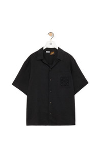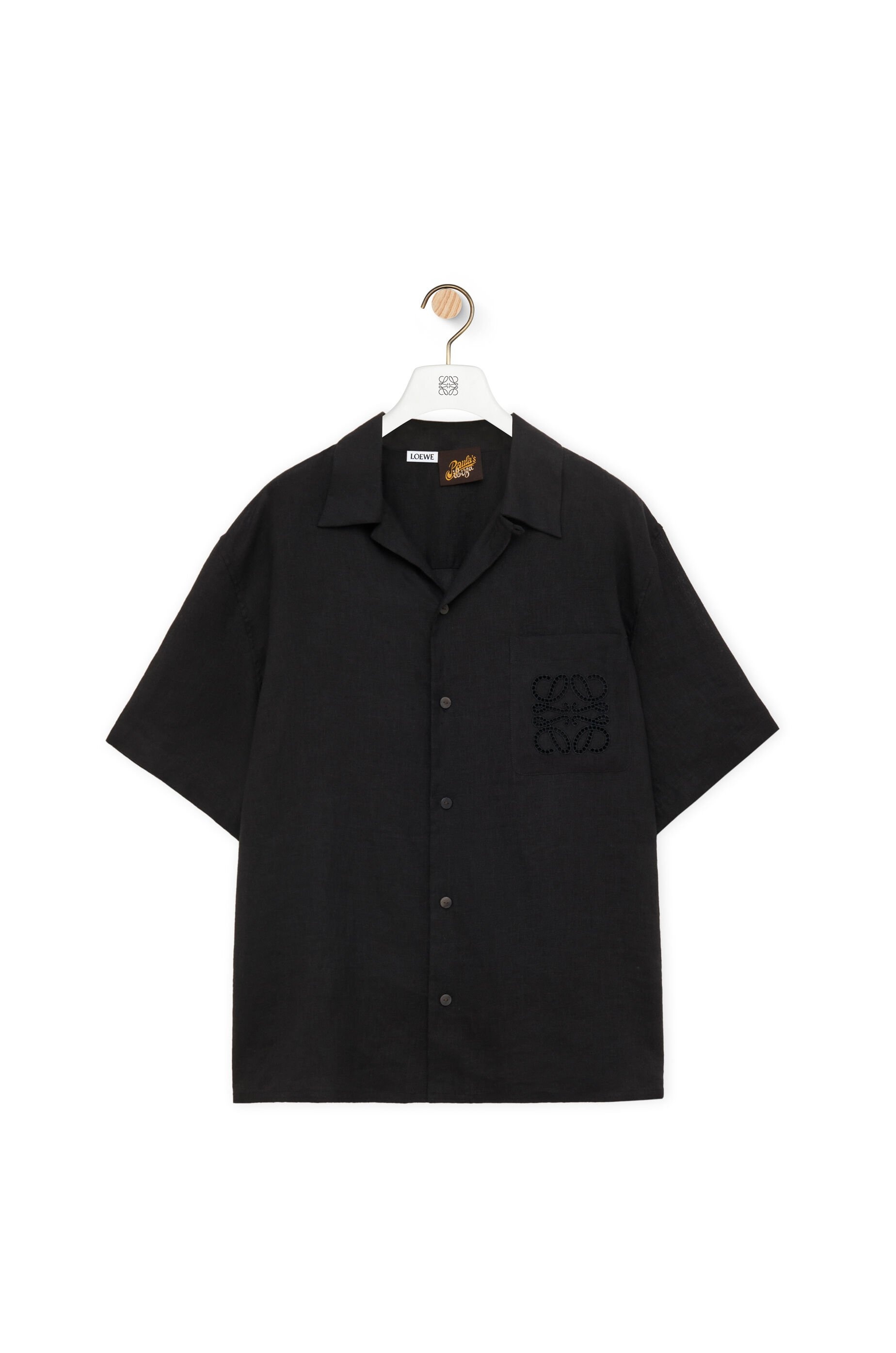 Shirt crafted in lightweight linen toile. - Relaxed fit - Regular length - Camp collar - Short sleeves - Button front fastening - Chest patch pocket - Straight hem - Anagram ajouré embroidery placed on the chest pocket Details - Colour: Black - Main material: Linen - Weight: 0.15 kg - Model ID: H616Y05X57 - Made in: Portugal