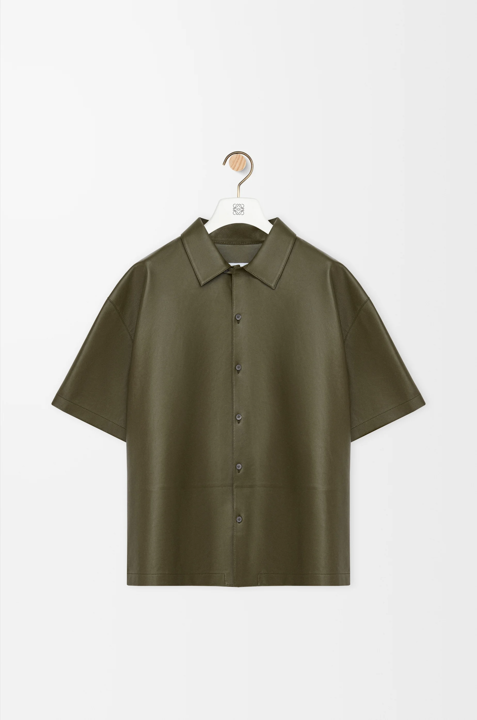 Shirt in lightweight soft nappa lambskin. - Relaxed fit, regular length - Camp collar - Button front fastening - Unlined - Embossed Anagram placed at the back Colour: Khaki Green Main material: Nappa Weight: 0.6 kg Made in: Spain Materials & care Main Material: 100% lambskin