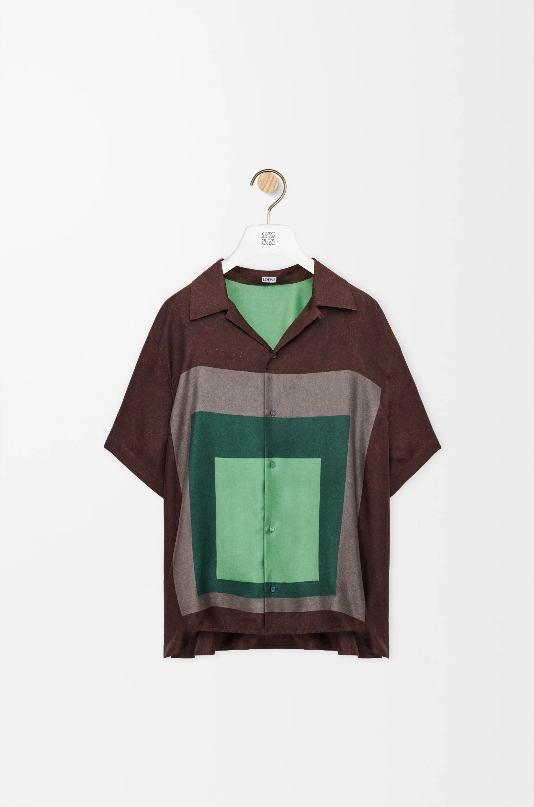 Shirt in lightweight silk twill featuring placed double-sided digital print squares inspired by Josef Albers's "Homage to the Square" series. This shirt is part of the LOEWE x Albers collection. - Relaxed fit, regular length - Camp collar - Button front fastening - Anagram embroidery placed at the back Colour: Brown/Green/Muticolor Main material: Silk Weight: 0.1 kg Made in: Italy Materials & care Main Material: 100% silk