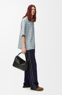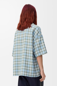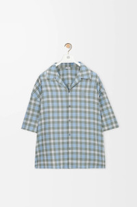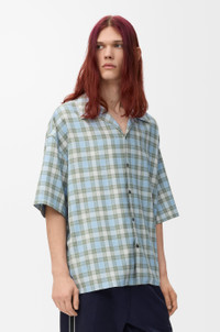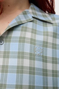 Shirt in lightweight wool blend tartan check. - Relaxed fit, regular length - Camp collar - Button front fastening - Anagram embroidery on the chest Colour: Light Blue/White Main material: Polyester/Wool Weight: 0.4 kg Made in: Italy Materials & care Main Material: 55% polyester 45% wool