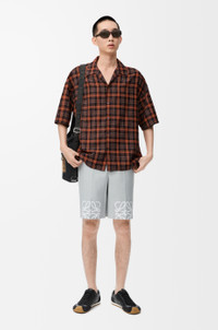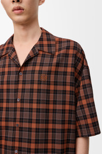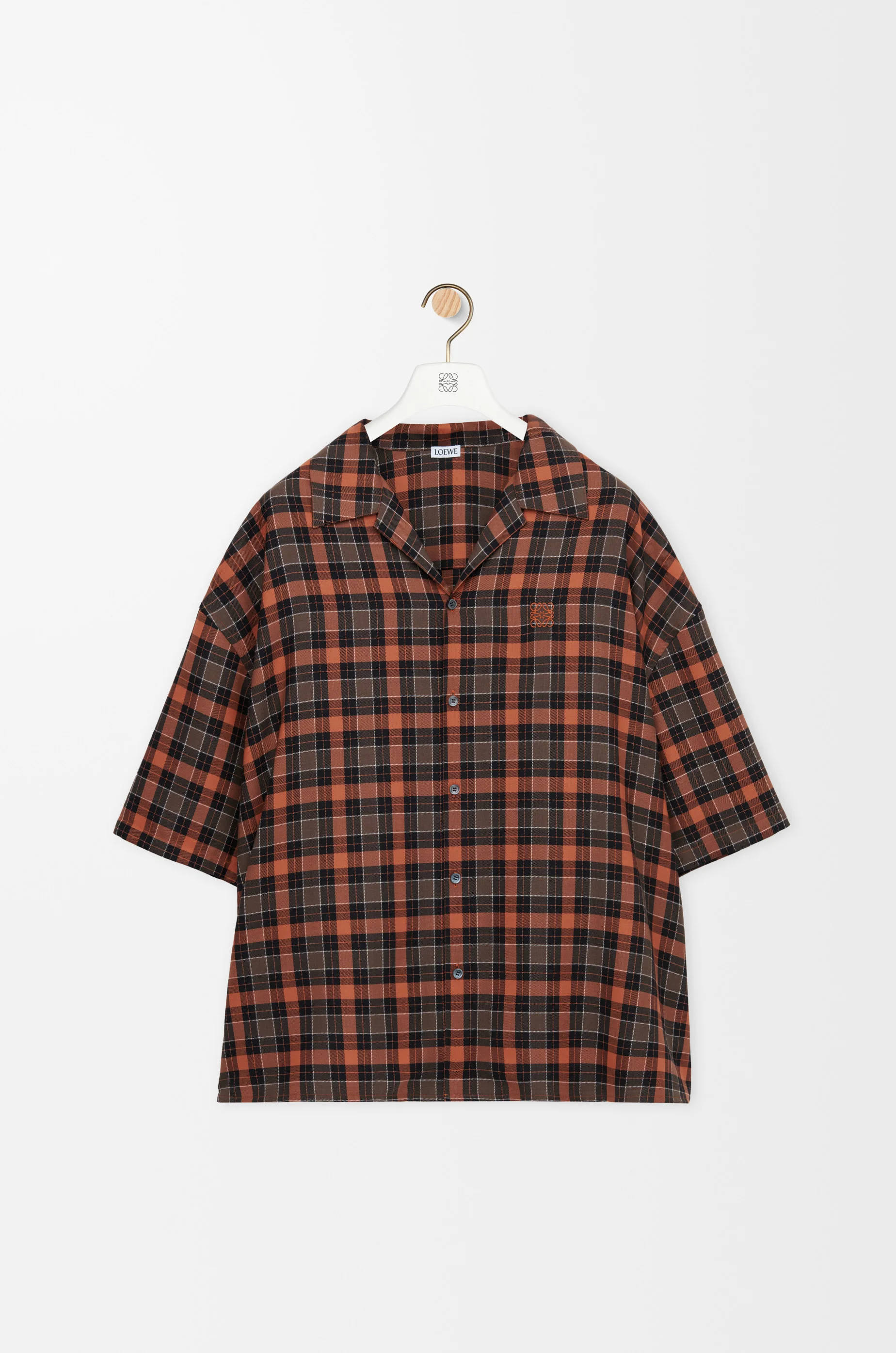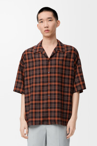 Shirt in lightweight wool blend tartan check. - Relaxed fit, regular length - Camp collar - Button front fastening - Anagram embroidery on the chest Colour: Orange/Black Main material: Polyester/Wool Weight: 0.4 kg Made in: Italy Materials & care Main Material: 55% polyester 45% wool