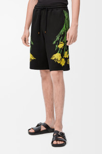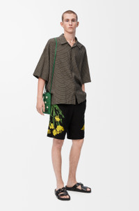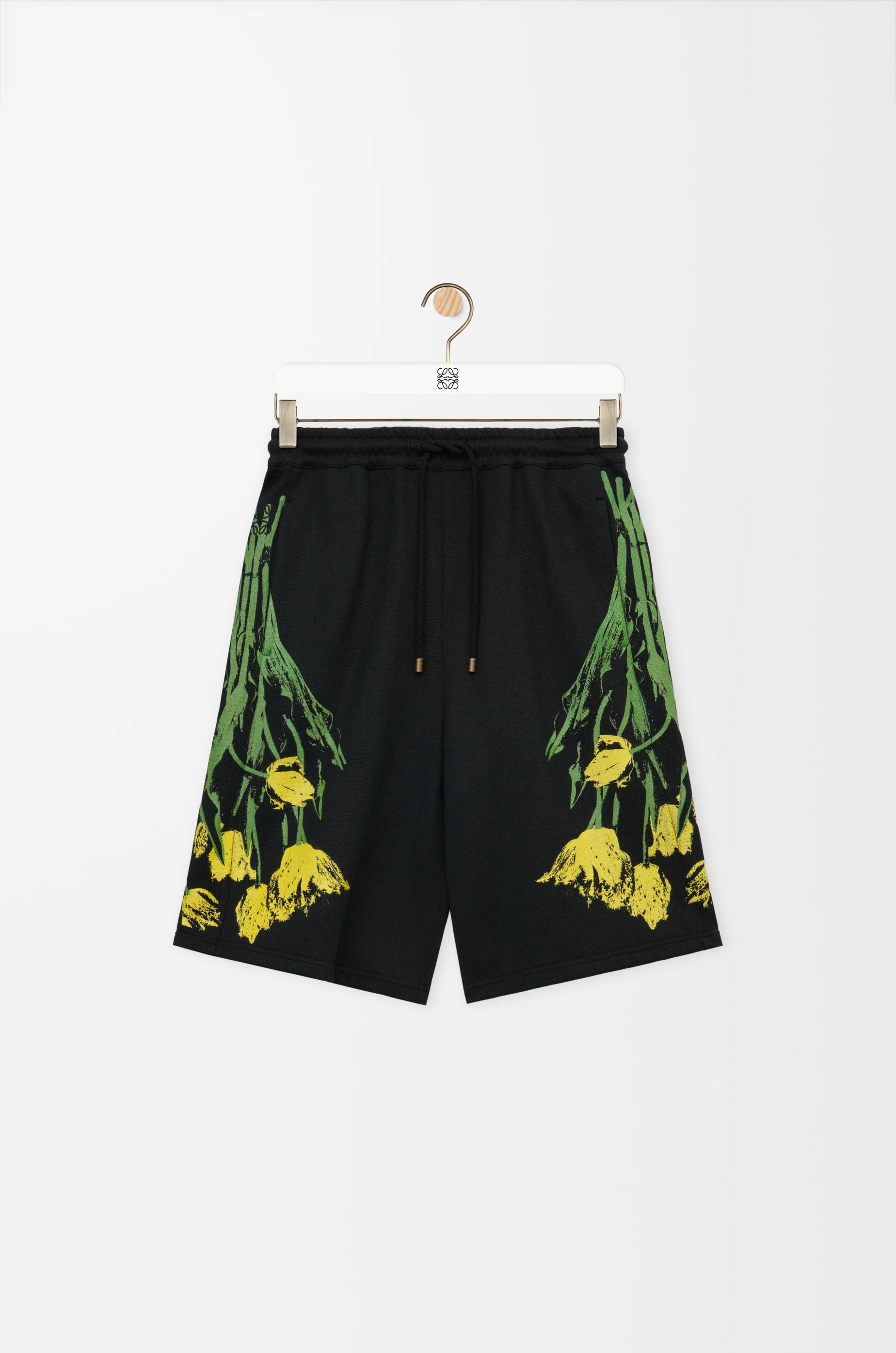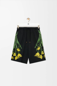 Shorts in lightweight cotton featuring exclusive placed floral motifs at the sides. - Regular fit, regular length - Mid waist - Elasticated waist with drawstring - Seam pockets, rear patch pocket - LOEWE Paula’s Ibiza jacquard label placed on the rear pocket Colour: Black/Multicolor Main material: Cotton Weight: 0.5 kg Made in: Portugal