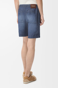 Shorts in lightweight washed chambray. - Regular fit, regular length - Mid waist - Elasticated waist with drawstring - Concealed button fly - Seam pockets, rear patch pockets - LOEWE embossed leather patch placed at the back Colour: Washed Blue Main material: Cotton Weight: 0.3 kg Made in: Japan Materials & care Main Material: 100% cotton