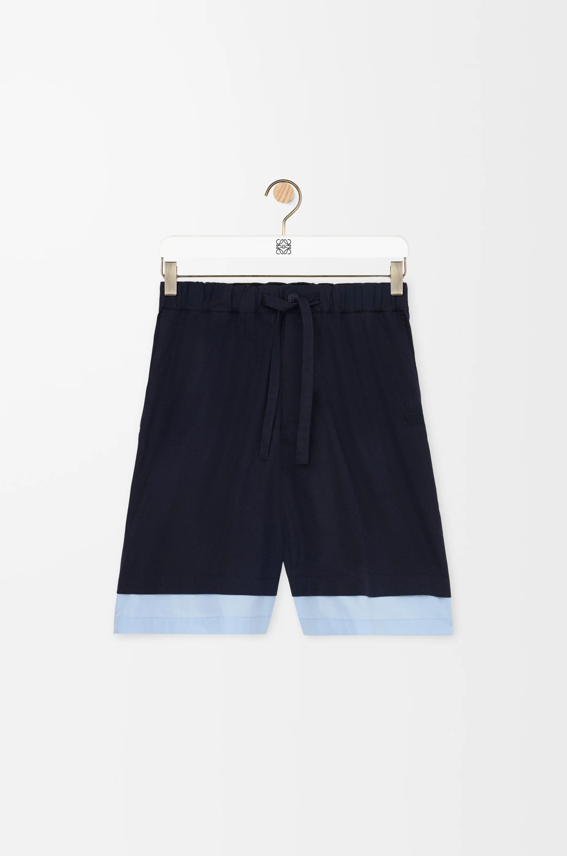 Shorts in lightweight cotton poplin featuring a trompe l’oeil construction. - Regular fit, regular length - Mid waist - Elasticated waist with drawstring - Concealed button fly - Seam pockets, rear patch pocket - Anagram embroidery placed at the front Colour: Dark Navy/Light Blue Main material: Cotton Weight: 0.2 kg Made in: Italy Materials & care Main Material: 100% cotton