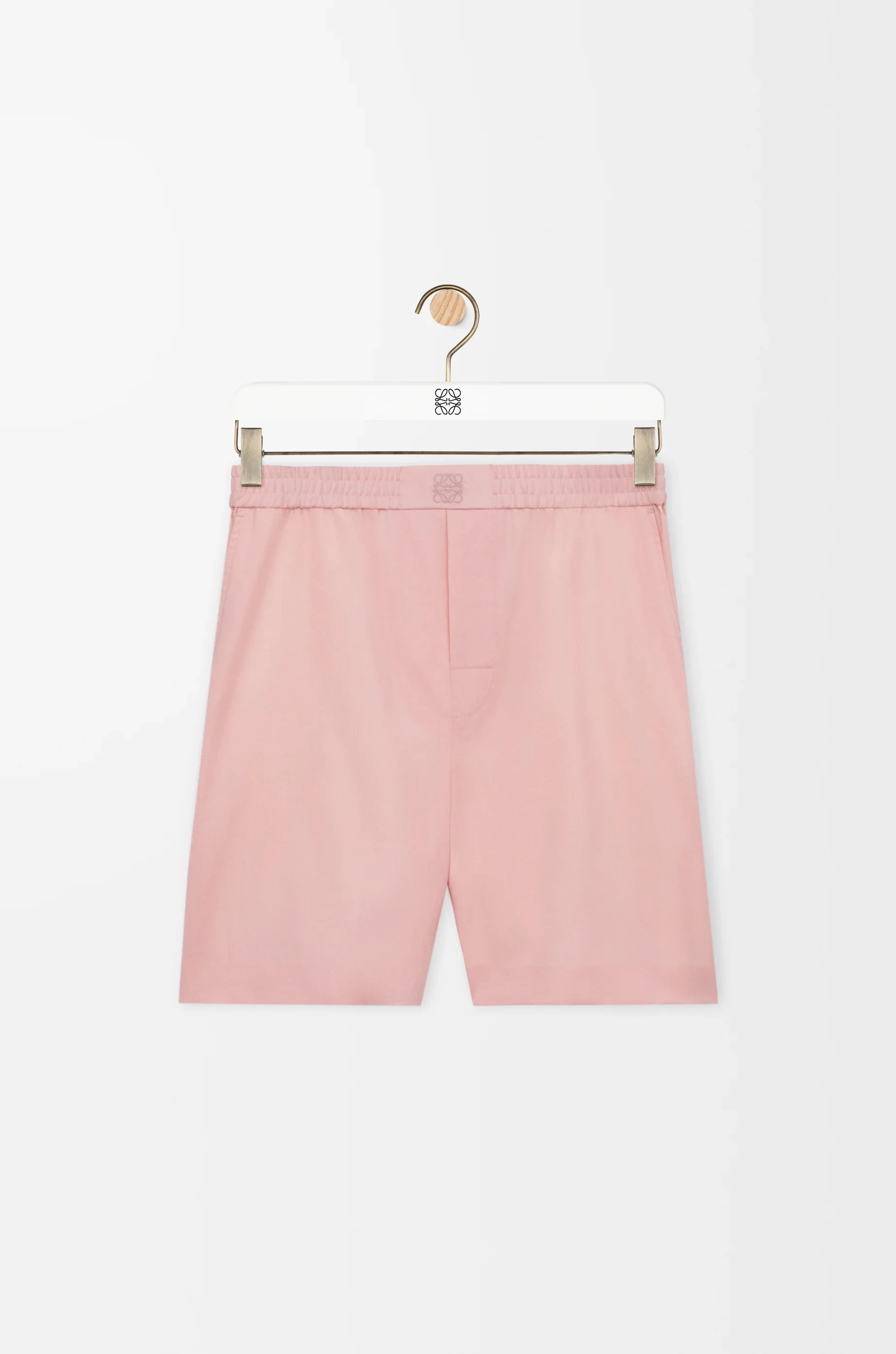 Shorts in lightweight shirting wool. - Regular fit, regular length - Mid waist - Elasticated waist, concealed button fly - Seam pockets, rear patch pocket - Fully lined - Anagram embroidery placed at the waist Colour: Coral Main material: Wool Weight: 0.2 kg Made in: Italy Materials & care Main Material: 100% wool