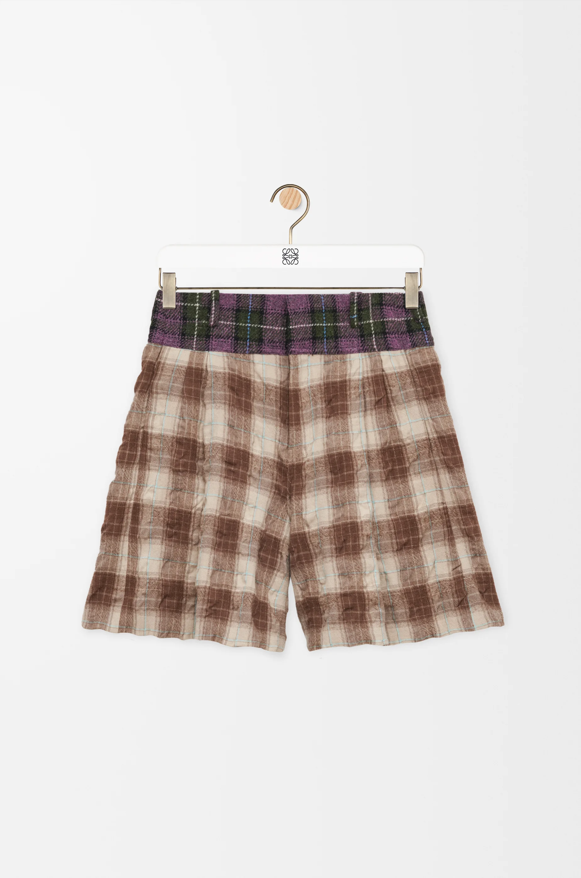 Shorts in lightweight washed wool and cotton flannel and medium-weight wool tweed tartan featuring mixed patterns. - Relaxed fit, regular length - Mid waist - Concealed zip fly - Seam pockets, buttoned rear flap pockets - LOEWE embossed leather patch placed at the back Colour: Brown/Pink Main material: Wool/cotton Weight: 0.49 kg Made in: Italy Materials & care Main Material: 51% wool 49% cotton