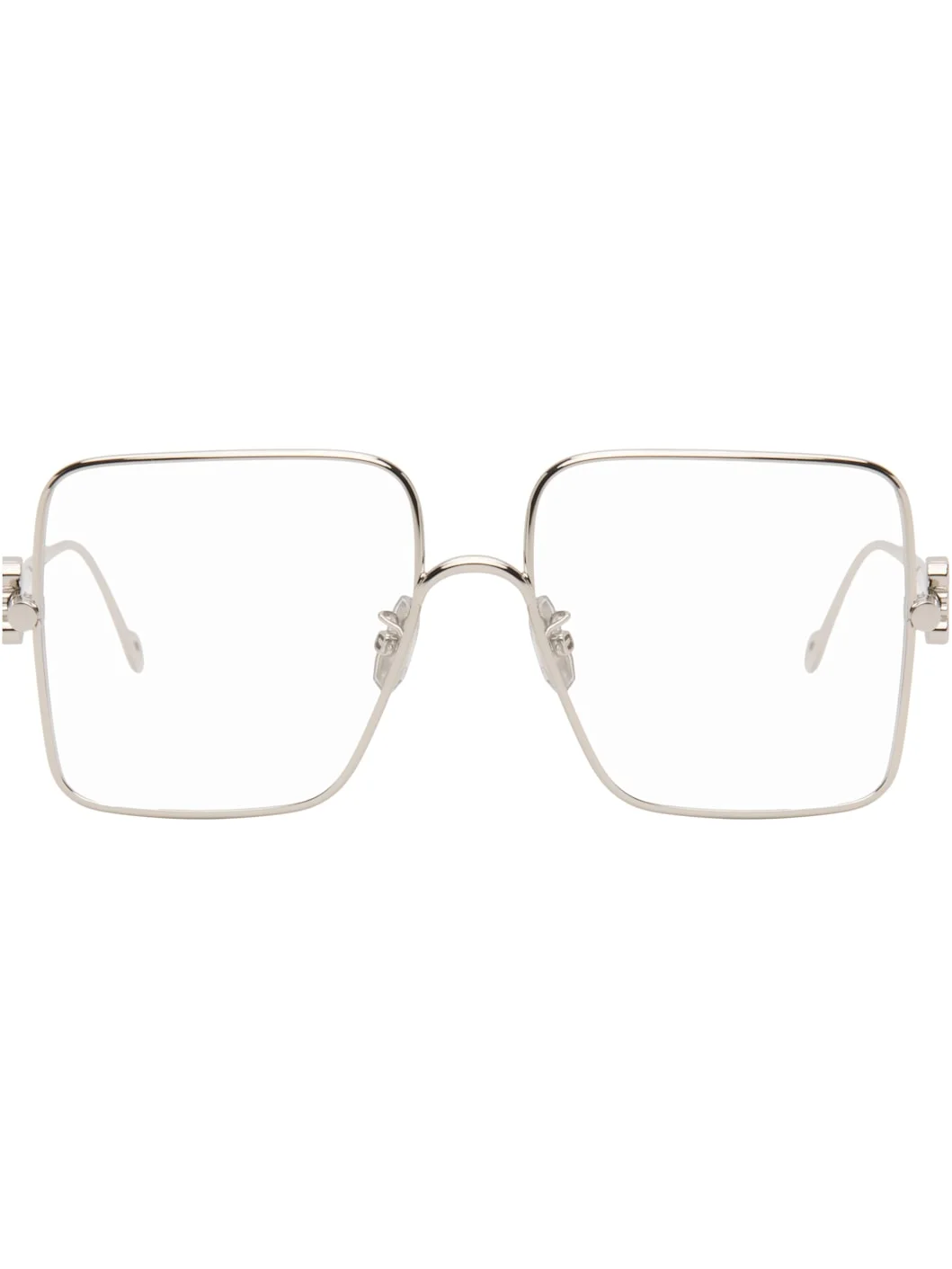Square metal-frame optical glasses. · Rubber nose pads · Logo hardware at temples · Opening at tips · Leather pouch included · Size: 56.16 140 Supplier color: Shiny Palladium Metal. Made in Italy 252677M133017