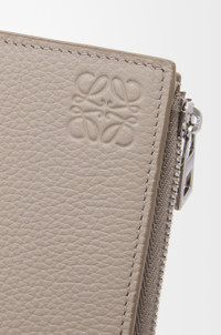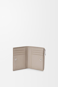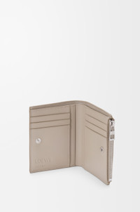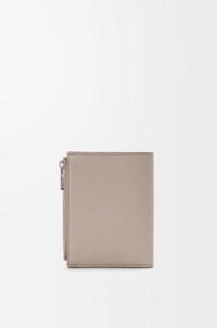 Slim compact wallet in soft grained calfskin. - Six card slots, four slip pockets, one large note pocket - One zipped coin compartment with calfskin pull - Snap button closure - Calfskin lining - Embossed Anagram Colour: Corda Metallic colour: Palladium Main material: Soft Grained Calf Weight: 0.09 kg Height: 11.8 cm Width: 9.3 cm Depth: 1 cm Made in: Spain