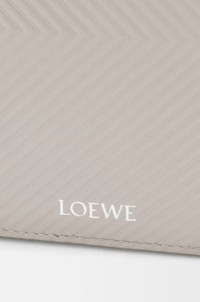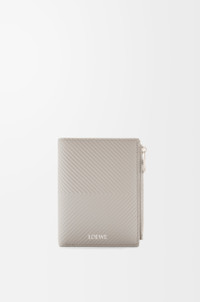 Slim compact wallet in classic calfskin embossed with a chevron pattern. - Six card slots, four slip pockets, one large note pocket - One zipped coin compartment with calfskin pull - Snap button closure - Calfskin lining - Silver embossed LOEWE Details - Colour : Shell Grey - Metallic colour : Palladium - Main material : Classic Calf - Weight : 0.09 kg - Height (cm) : 11.8 - Width (cm) : 9.3 - Depth (cm) : 1 - Height (inch) : 4.6 - Width (inch) : 3.7 - Depth (inch) : 0.4 - Model ID : C779W73X01 - CIL : - 0011248440 - Made in : Spain