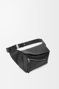 The Puzzle bag is the debut bag for LOEWE by Creative Director Jonathan Anderson. A cuboid shape and precise cutting technique create Puzzle’s distinctive geometric lines. This small bumbag version is crafted in grained calfskin. - Shoulder or crossbody carry - Adjustable strap featuring metal clasp closure with engraved LOEWE - Zip closure with calfskin zip pull - One external zip pocket, one internal slip pocket - Herringbone cotton canvas lining - Embossed Anagram Details - Colour : Black - Metallic colour : Palladium - Main material : Grained Calf - Strap length : 88 - 147 cm - Strap Drop : 40 - 71 cm - Weight : 0.53 kg - Height (cm) : 16 - Width (cm) : 24 - Depth (cm) : 10.5 - Height (inch) : 6.3 - Width (inch) : 9.4 - Depth (inch) : 4.1 - Model ID : B510SEBX08 - CIL : - 0011215787 - Made in : Spain