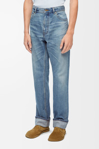 Straight leg jeans crafted in medium-weight washed Japanese cotton denim. - Regular fit - Regular length - Mid waist - Straight leg - Customised LOEWE 1846 selvedge - Five pocket style - LOEWE Made in Japan embossed leather patch placed at the back Details - Colour: Vintage Blue - Main material: Cotton - Weight: 0.9 kg - Model ID: H526Y11W18 - Made in: Japan