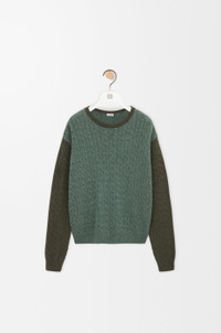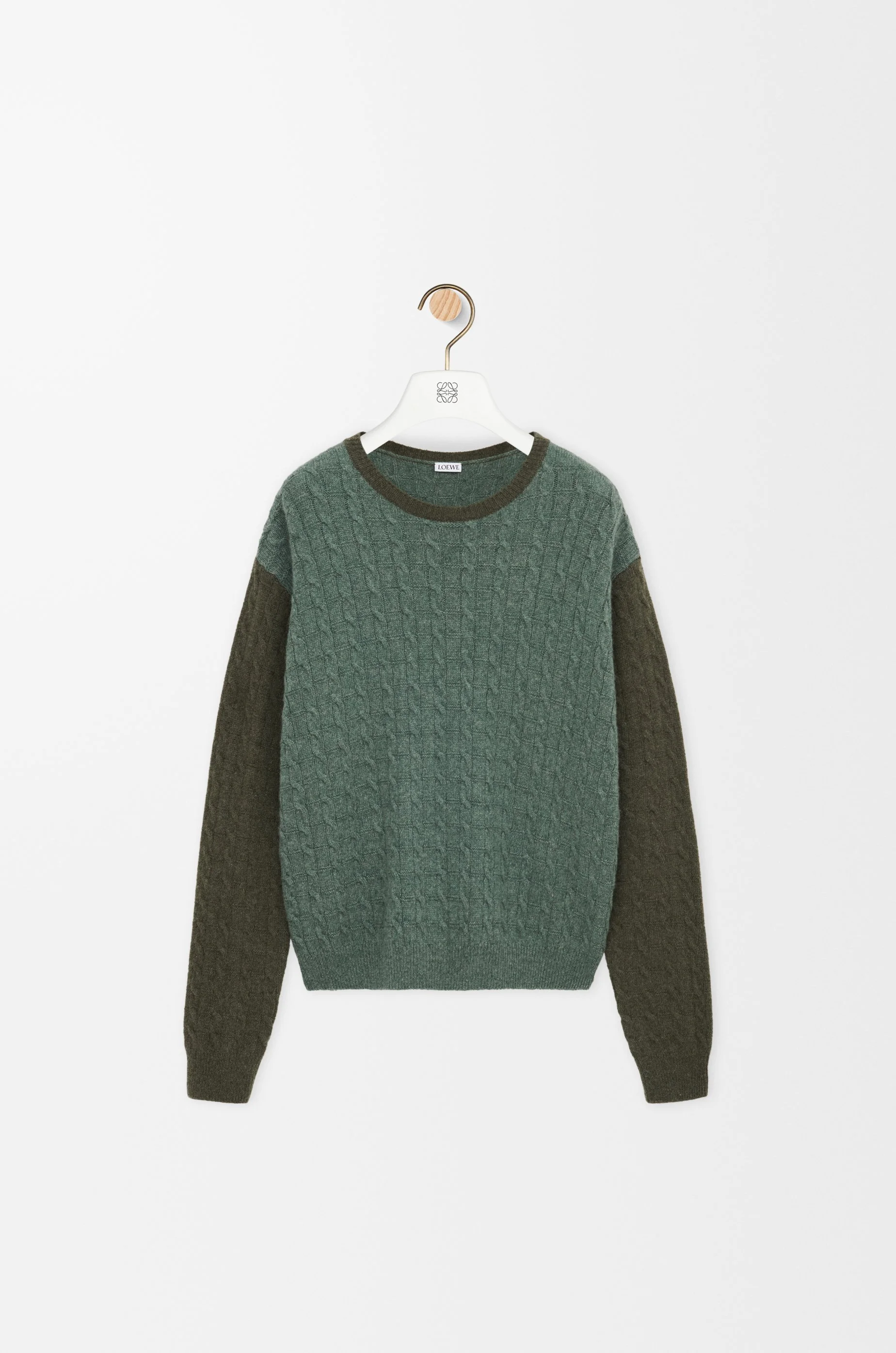 Sweater in medium-weight cashmere featuring contrast collar and sleeves. - Relaxed fit, regular length - Cable stitch - Round neck - Ribbed collar, cuffs and hem - Anagram embossed leather patch placed at the back Colour: Light Green/Khaki Green Main material: Cashmere Weight: 0.54 kg Made in: Italy Materials & care Main Material: 98% cashmere 1% calf skin 1% polyamide