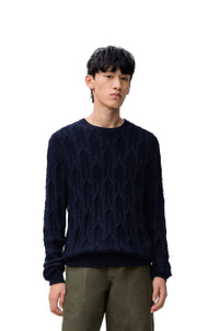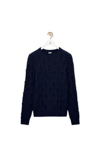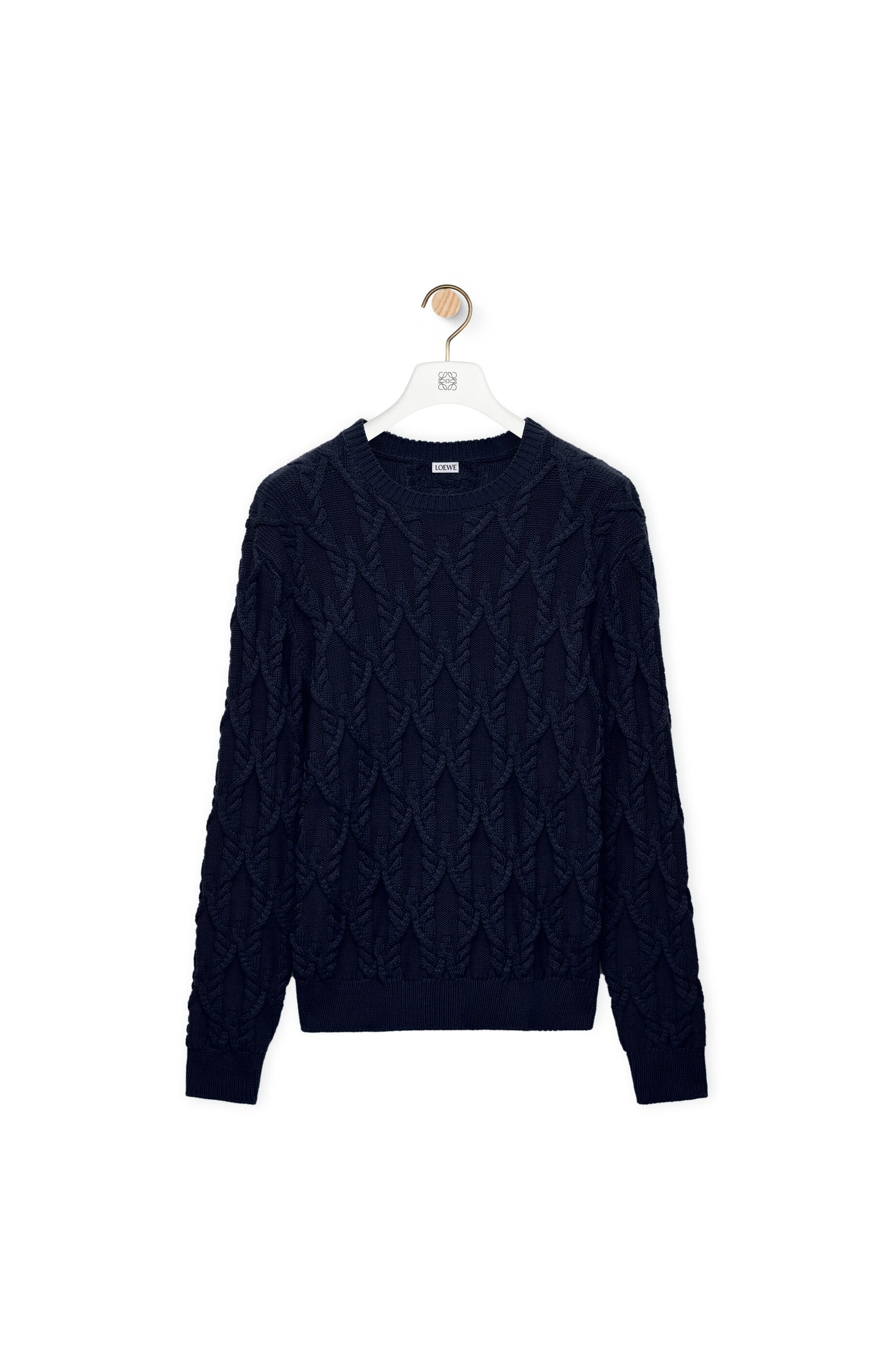Sweater in lightweight cotton. - Regular fit, regular length - Cable stitch - Crew neck - Ribbed collar, cuffs and hem - LOEWE Anagram rubber patch placed at the back Details - Colour : Navy Blue - Main material : Cotton - Weight : 0.7 kg - Model ID : H526Y14KKZ - Made in : Italy