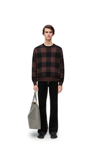 Sweater crafted in medium-weight silk and viscose jacquard. - Relaxed fit - Regular length - Check pattern - Round neck - Ribbed collar, cuffs and hem - Anagram embossed leather tab placed at the side Details - Colour: Black/Brown - Main material: Silk/Viscose - Weight: 0.7 kg - Model ID: H526Y14KGW - Made in: Italy
