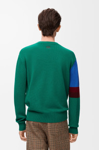 Sweater in medium-weight wool featuring intarsia squares inspired by Josef Albers's "Homage to the Square" series. This sweater is part of the LOEWE x Albers collection. - Regular fit, regular length - Jersey stitch - Round neck - Ribbed collar, cuffs and hem - Anagram embroidery placed at the back Colour: Green/Red/Multicolor Main material: Wool Weight: 0.4 kg Made in: Italy Materials & care Main Material: 100% wool