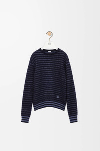 Sweater in medium-weight wool featuring blurred effect stripes and a gradient brushed finishing at the front and sleeves. - Regular fit, regular length - Jacquard stitch - Round neck - Ribbed collar, cuffs and hem - Anagram embroidery placed at the front Colour: Dark Navy Main material: Wool Weight: 0.5 kg Made in: Italy Materials & care Main Material: 98% wool 1% polyamide 1% elastane