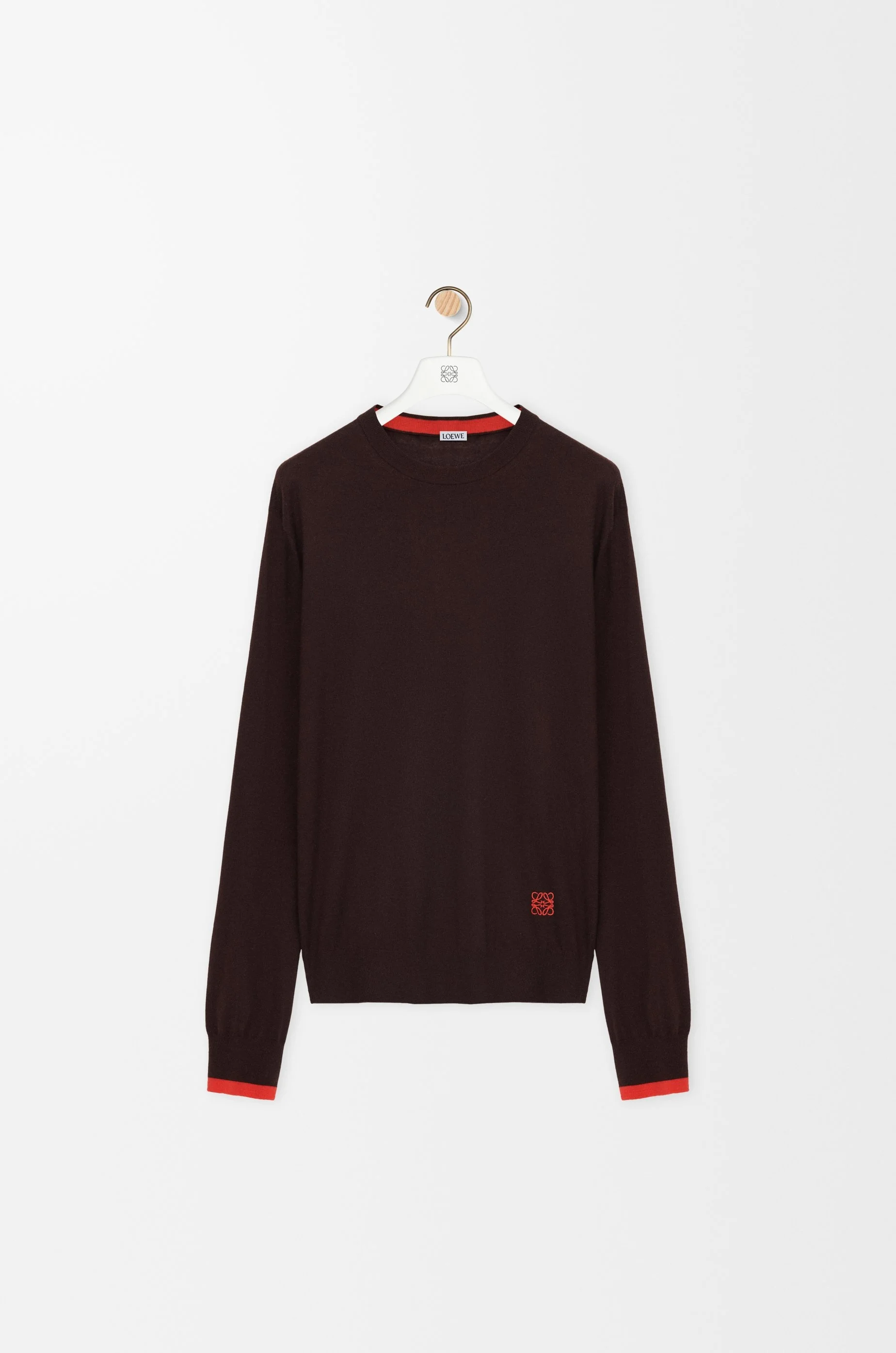 Sweater in lightweight fine wool featuring contrast rib details at the inside collar and cuffs. - Regular fit, regular length - Jersey stitch - Round neck - Ribbed collar, cuffs and hem - Contrast Anagram embroidery placed at the front Colour: Brown/Orange Main material: Wool Weight: 0.19 kg Made in: Italy Materials & care Main Material: 100% wool