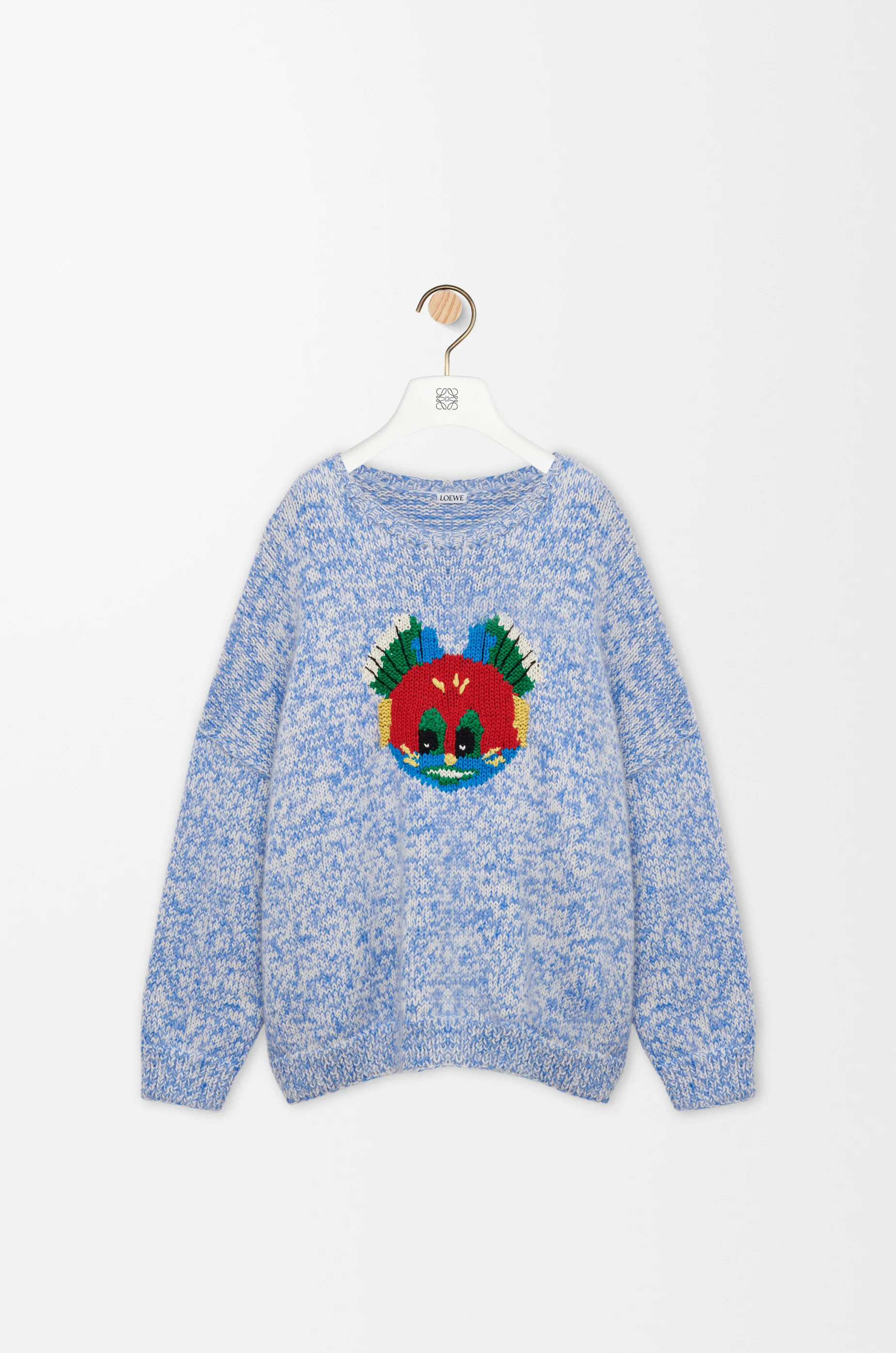 Sweater in medium-weight wool and mohair blend featuring a Knight Cat intarsia and hand-embroidery at the front. This sweater is inspired by Louis Wain's "Futurist Cats" porcelain vase series. - Relaxed fit, regular length - Hand-knitted with mouline yarn - Round neck - Ribbed collar, cuffs and hem Colour: Blue/White Main material: Wool/mohair Weight: 1.07 kg Materials & care Main Material: 74% wool 14% mohair 6% polyamide 6% cotton