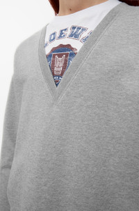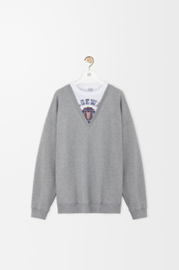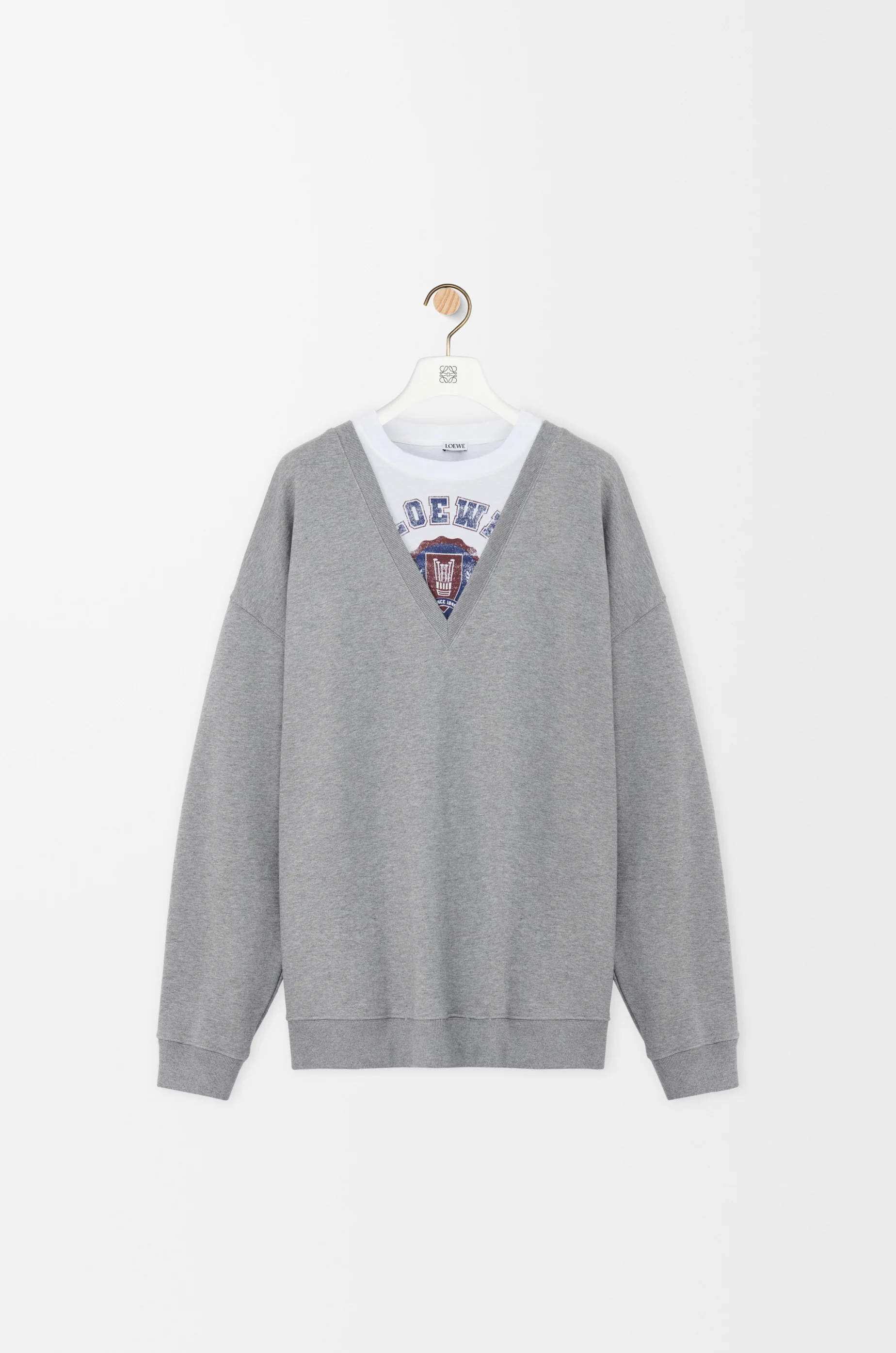 Sweatshirt in medium-weight loopback cotton fleece featuring a trompe l’oeil construction with a LOEWE screenprint at the front. - Regular fit, regular length - Crew neck - Ribbed cuffs and hem Colour: Grey Melange Main material: Cotton Weight: 0.7 kg Made in: Portugal Materials & care Main Material: 100% cotton