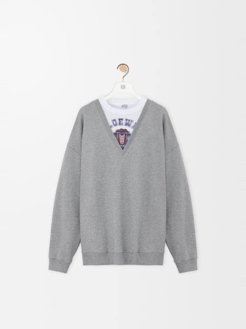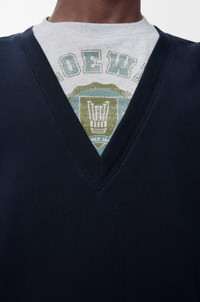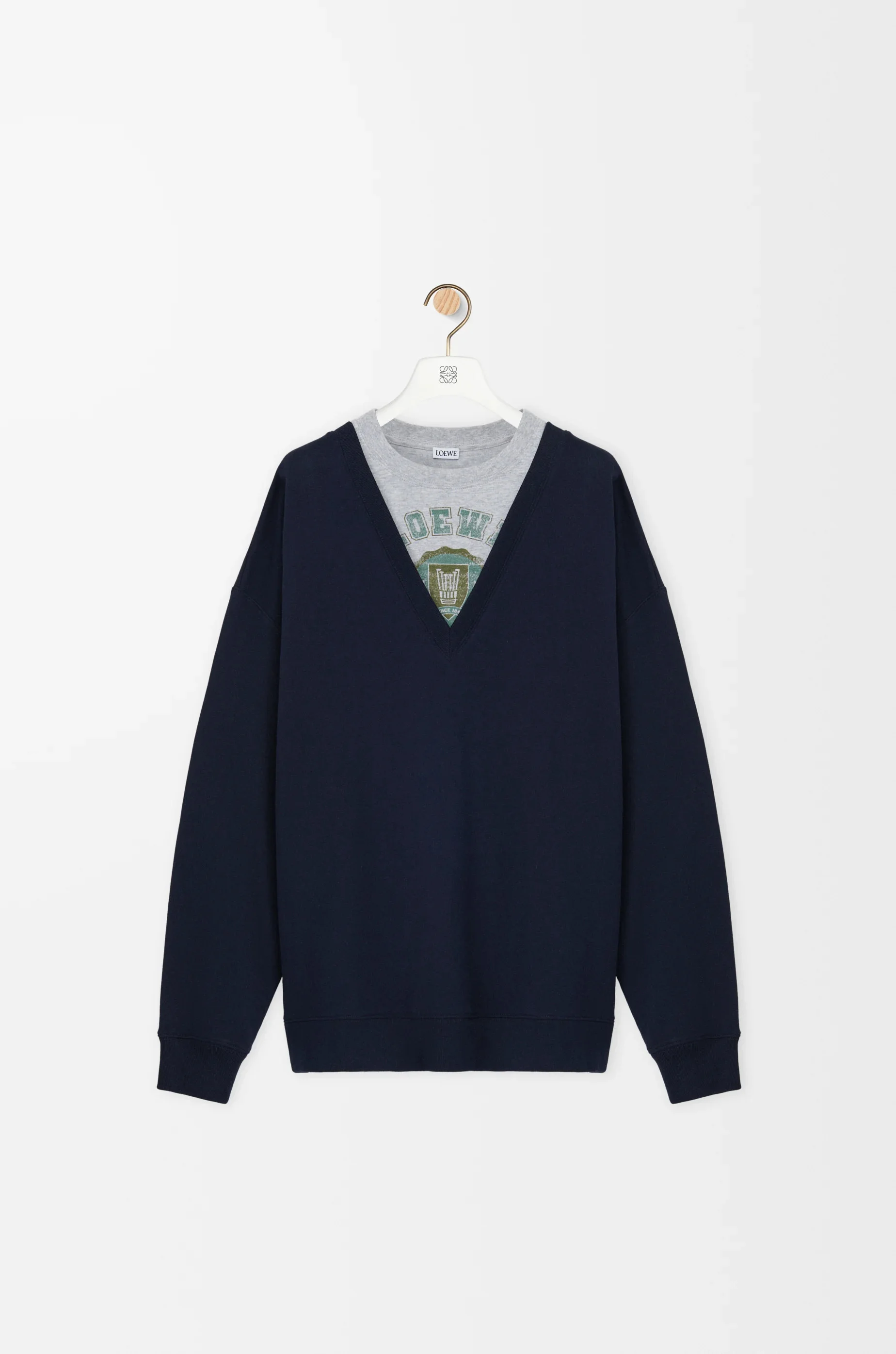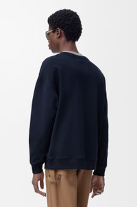 Sweatshirt in medium-weight loopback cotton fleece featuring a trompe l’oeil construction with a LOEWE screenprint at the front. - Regular fit, regular length - Crew neck - Ribbed cuffs and hem Colour: Dark Navy Blue Main material: Cotton Weight: 0.7 kg Made in: Portugal Materials & care Main Material: 100% cotton