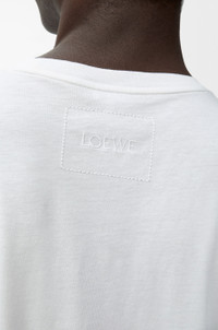 T-shirt in lightweight cotton featuring intarsia patches at the front and back and a contrast chest patch pocket. - Relaxed fit, regular length - Crew neck - LOEWE embroidery placed at the back Details - Colour : White/Grey/Violet - Main material : Cotton - Weight : 0.1 kg - Model ID : H526Y22XBH - Made in : Portugal