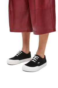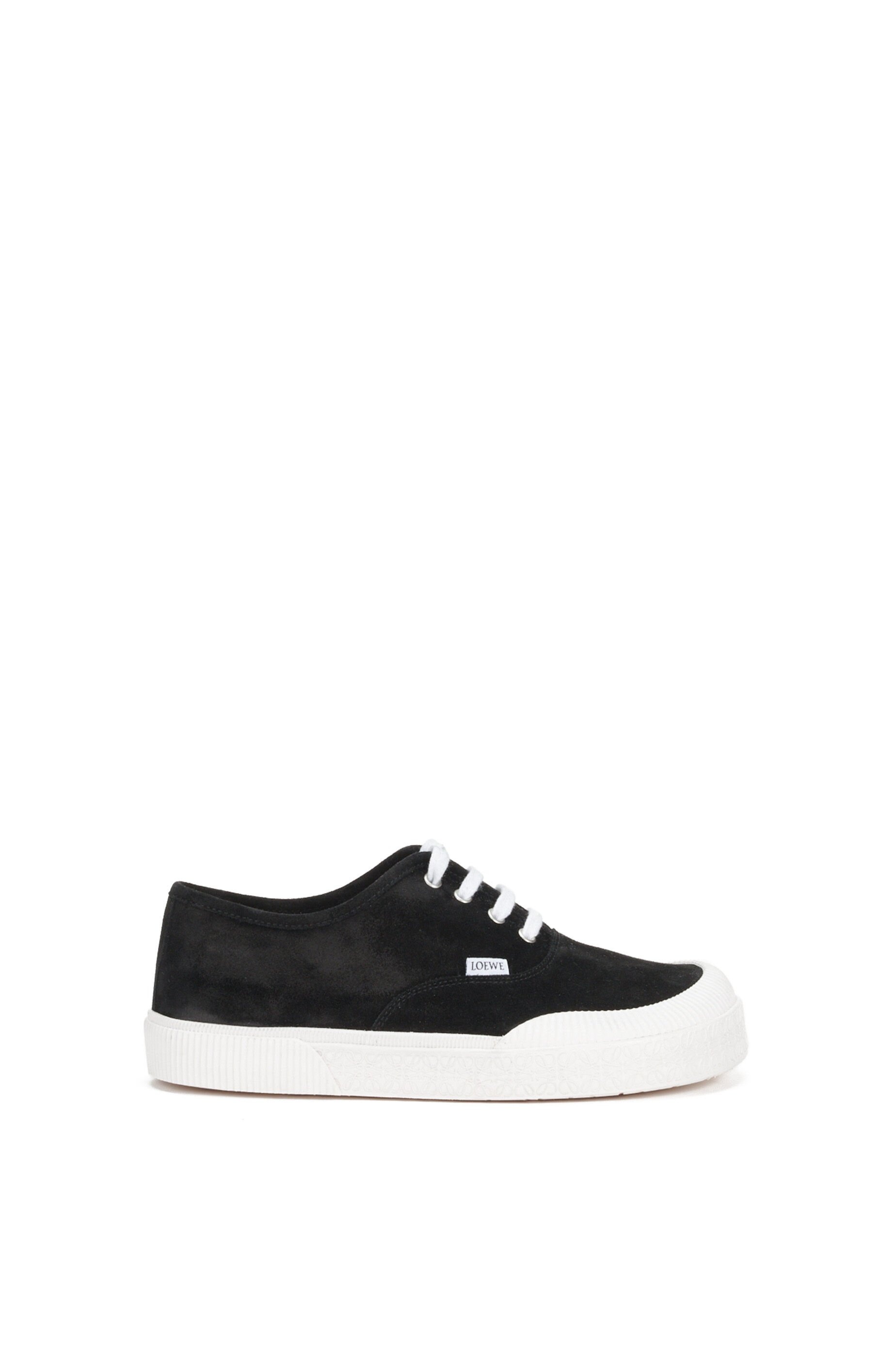 Suede lace-up sneaker on a vulcanised rubber sole featuring a bulky and asymmetric toe shape. - Wide fit - LOEWE logo tag on the quarter - Embossed Anagram outsole and foxing Details - Colour: Black - Main material: Split Calfskin - Heel height: 2.5 - Weight: 1.0 kg - Model ID: M616284X02 - Made in: Spain