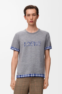 Top in lightweight compact wool and cotton featuring a jacquard LOEWE at the front and gingham jacquard on the reverse. - Regular fit, regular length - Pique jacquard stitch - Round neck Colour: Grey/White Main material: Wool/Cotton Weight: 0.4 kg Made in: Italy Materials & care Main Material: 77% wool 21% cotton 1% polyamide 1% elastane