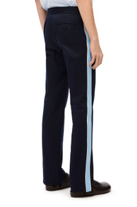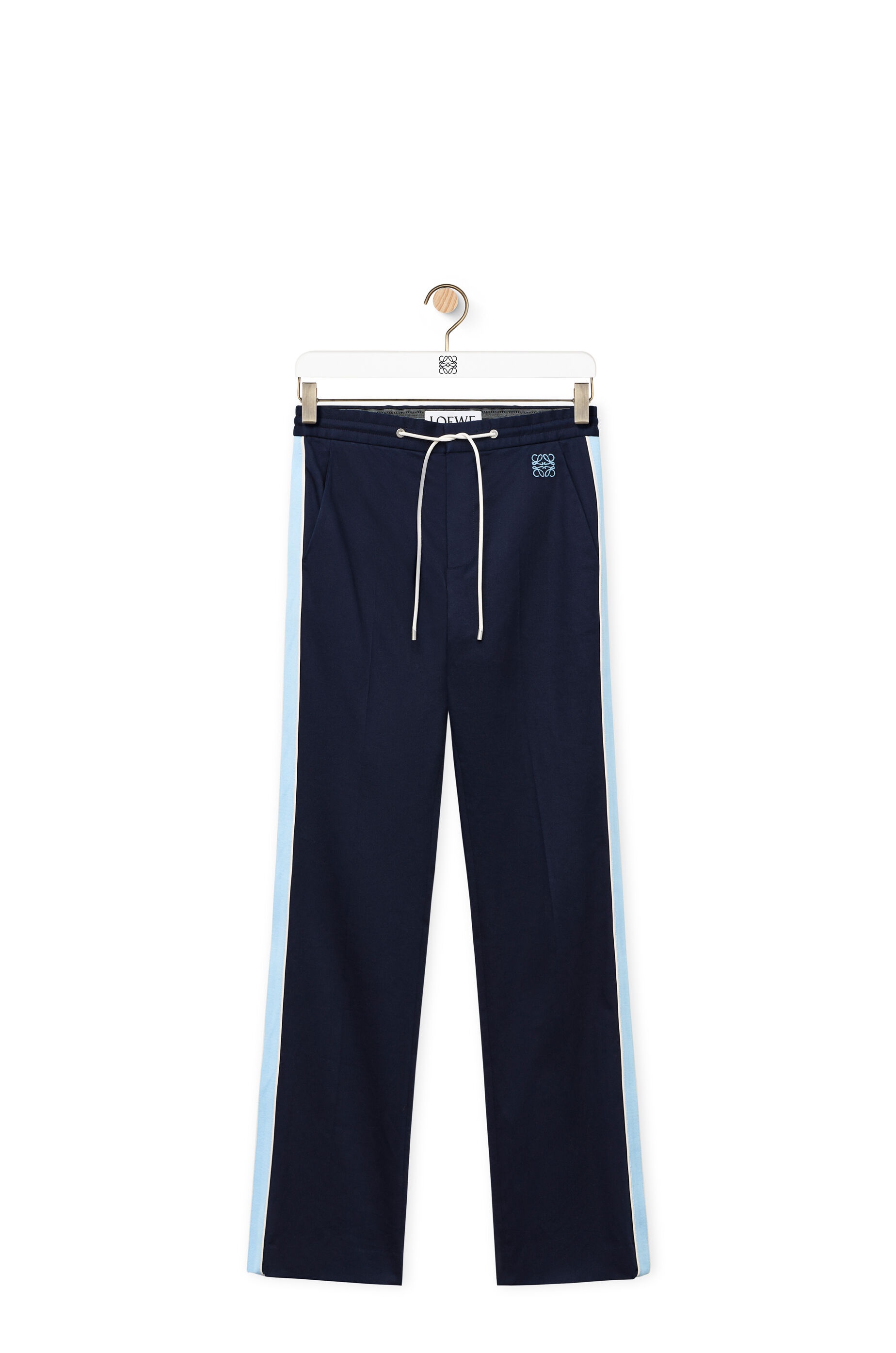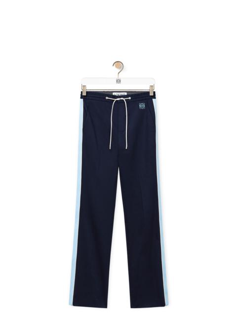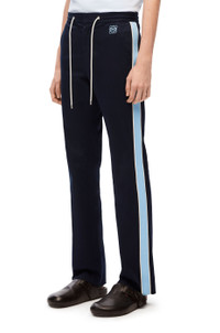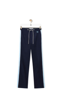 Tracksuit trousers crafted in compact stretch cotton twill. - Regular fit - Regular length - Mid waist - Straight leg - Cotton tape along the sides with contrasted leather piping - Elasticated waist with leather drawstring - Concealed zip fastening - Slash pockets - Rear buttoned welt pocket - Pleats detailings at the front and back - Anagram embroidery placed at the back Details - Colour: Midnight Blue - Main material: Cotton/Elasthane - Weight: 0.5 kg - Model ID: H526Y04WCA - Made in: Italy