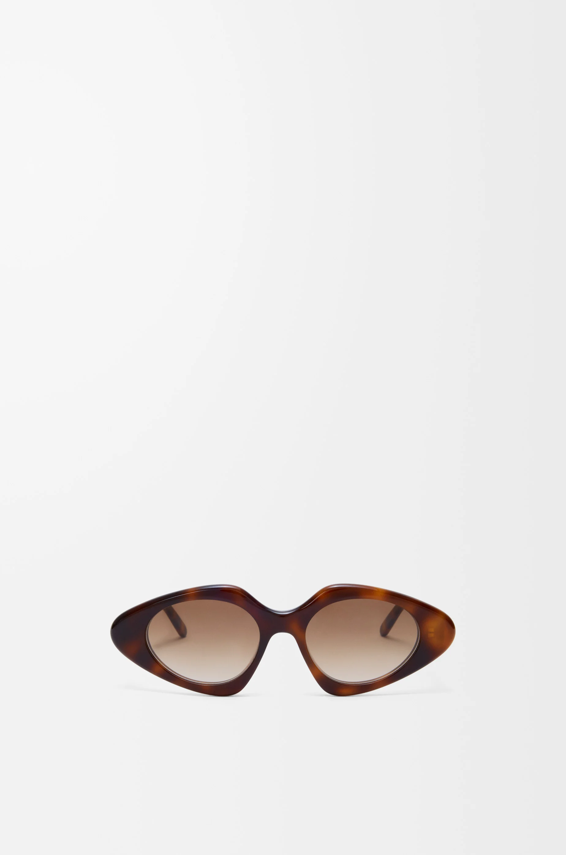 Triangle-shaped sunglasses in a slim acetate construction. - International fit - UVA/UVB protection - Gold-finish metal LOEWE Colour: Havana Main material: Acetate Made in: Italy