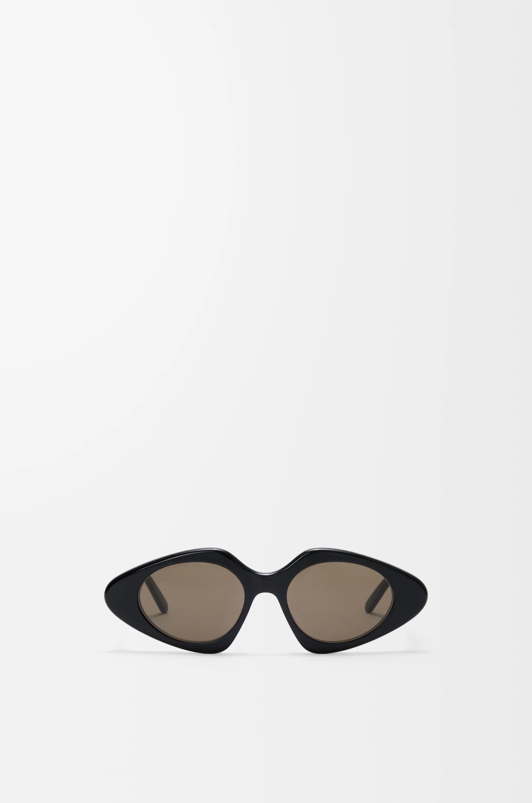 Triangle-shaped sunglasses in a slim acetate construction. - International fit - UVA/UVB protection - Gold-finish metal LOEWE Colour: Black Main material: Acetate Made in: Italy