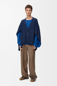 Sweater in medium-weight brushed wool featuring a hybrid construction with a cardigan front panel that can be worn at the back. - Relaxed fit, regular length - Jersey stitch - Round neck - Button front fastening - Ribbed cuffs and hem - Kangaroo pocket - LOEWE engraved horn buttons Colour: Blue/Dark Blue Main material: Wool Weight: 0.7 kg Made in: Italy Materials & care Main Material: 98% wool 1% polyamide 1% elastane