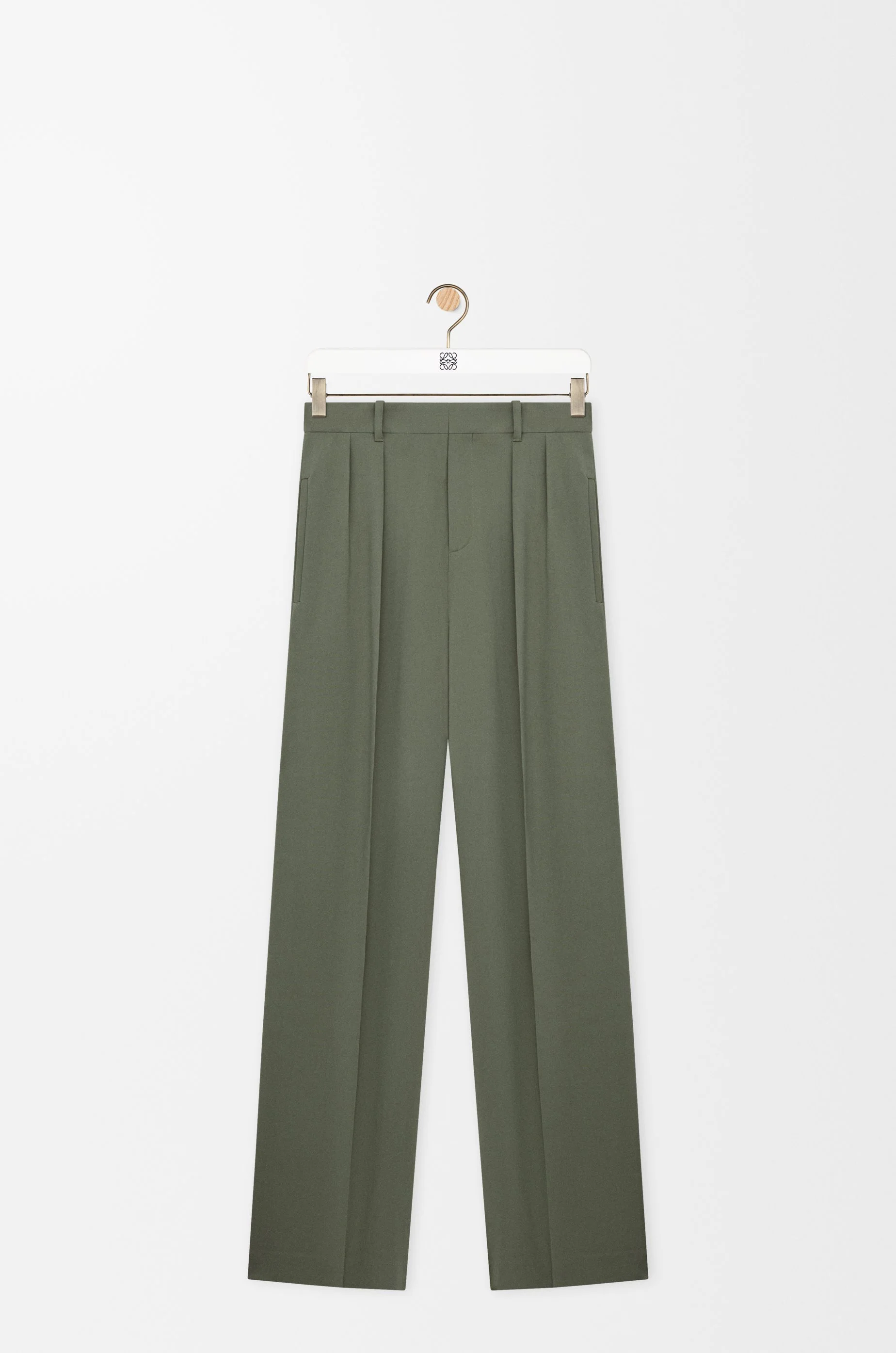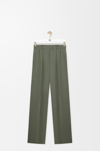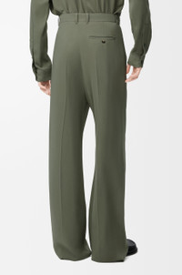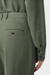 Trousers in lightweight fluid viscose blend cady featuring a pleated front. - Regular fit, regular length - Mid waist, straight leg - Concealed zip fly - Slash pockets, buttoned rear welt pocket - Pressed creases at the front and back - Half lined - Anagram embroidery placed at the back Colour: Khaki Green Main material: Viscose/Elastan Weight: 0.6 kg Made in: Italy Materials & care Main Material: 96% viscose 4% elastane