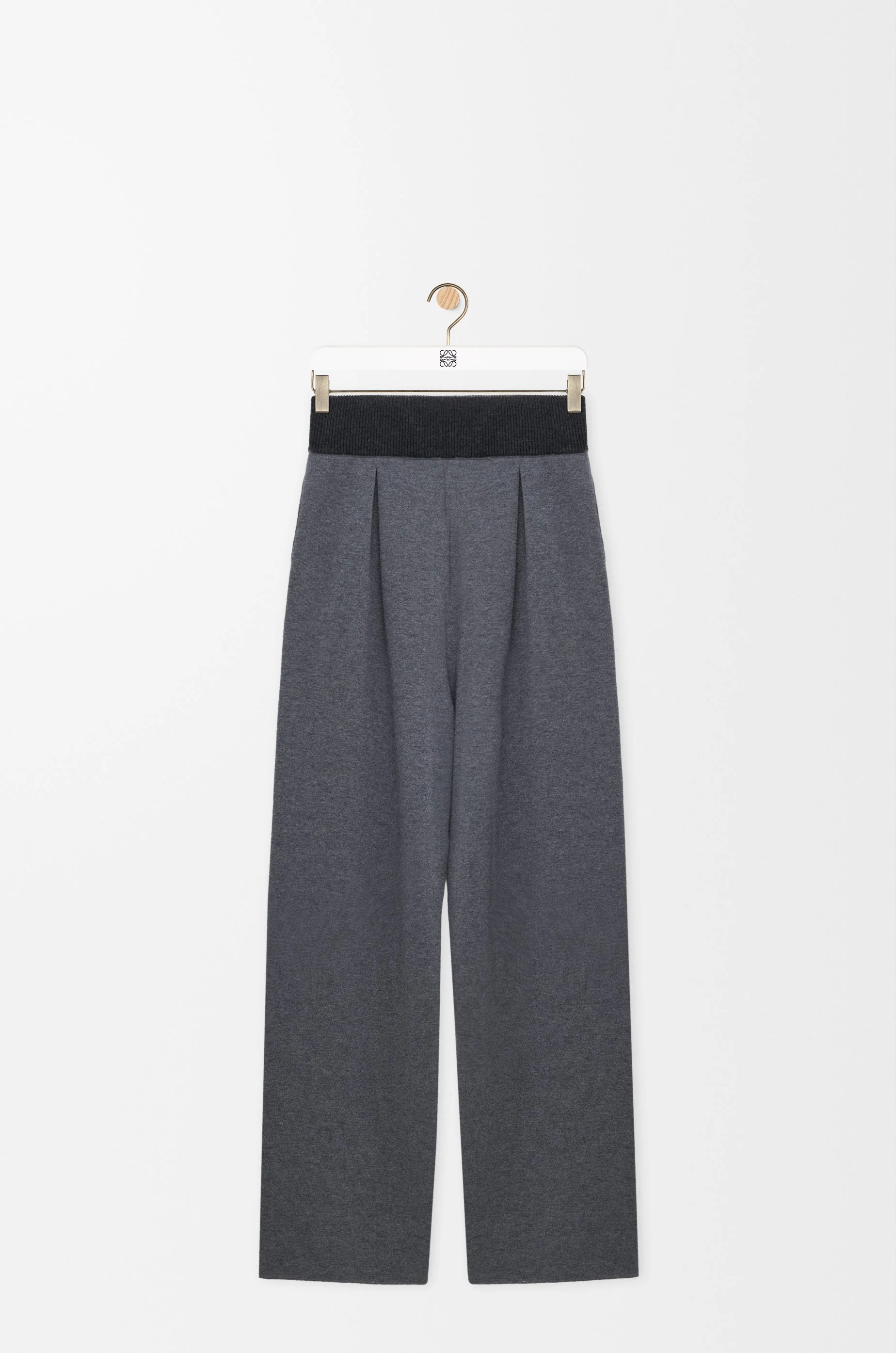 Trousers in medium-weight wool featuring a contrast elasticated rib waistband. - Relaxed fit, regular length - Mid waist, straight leg - Double face stitch - Seam pockets, rear welt pocket - Anagram embossed leather patch placed on the back pocket Colour: Grey Melange Main material: Wool Weight: 0.99 kg Made in: Italy Materials & care Main Material: 90% wool 10% calf skin