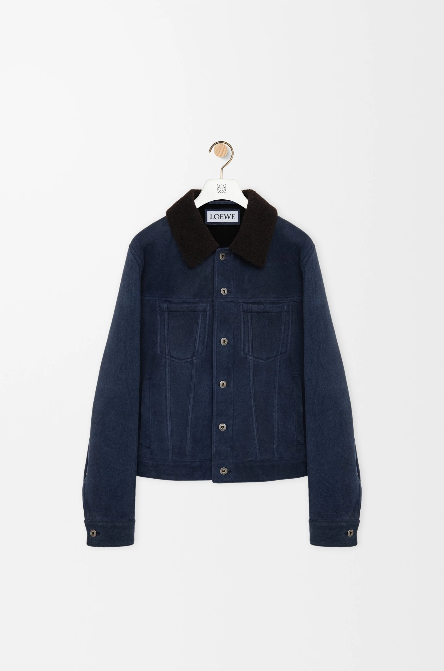 Jacket in medium-weight bicolour Merino shearling. - Regular fit, regular length - Classic collar - Button front fastening, buttoned cuffs - Chest patch pockets, buttoned vertical welt pockets - LOEWE embossed suede patch placed at the back Colour: Navy Blue/Brown Main material: Shearling Weight: 1.3 kg Made in: Italy Materials & care Main Material: 100% lambskin