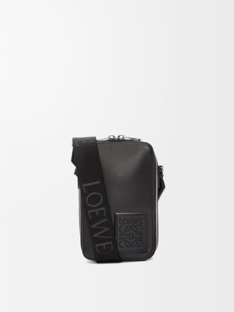 Functional wearable pocket with a double zip closure and a debossed LOEWE Anagram patch. This version is crafted in satin calfskin. - Crossbody carry - Adjustable LOEWE webbing strap - Internal slip pocket and leather card slot - Herringbone cotton canvas lining Details - Colour: Khaki Green - Metallic colour: Palladium - Main material: Satin Calf - Strap length: 69 - 112 cm - Weight: 0.26 kg - Height (cm): 18 - Width (cm): 11 - Depth (cm): 3.7 - Height (inch): 7.1 - Width (inch): 4.3 - Depth (inch): 1.5 - Model ID: C565S59X01 - CIL: 0010973477 - Made in: Spain