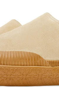 Mule in suede on a vulcanised rubber sole. - Embossed Anagram outsole and asymmetric toe shape Details - Colour: Gold - Main material: Suede - Heel height: 3.5 - Weight: 1.0 kg - Model ID: M616379X03 - Made in: Spain