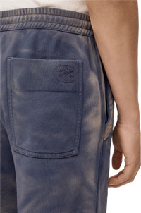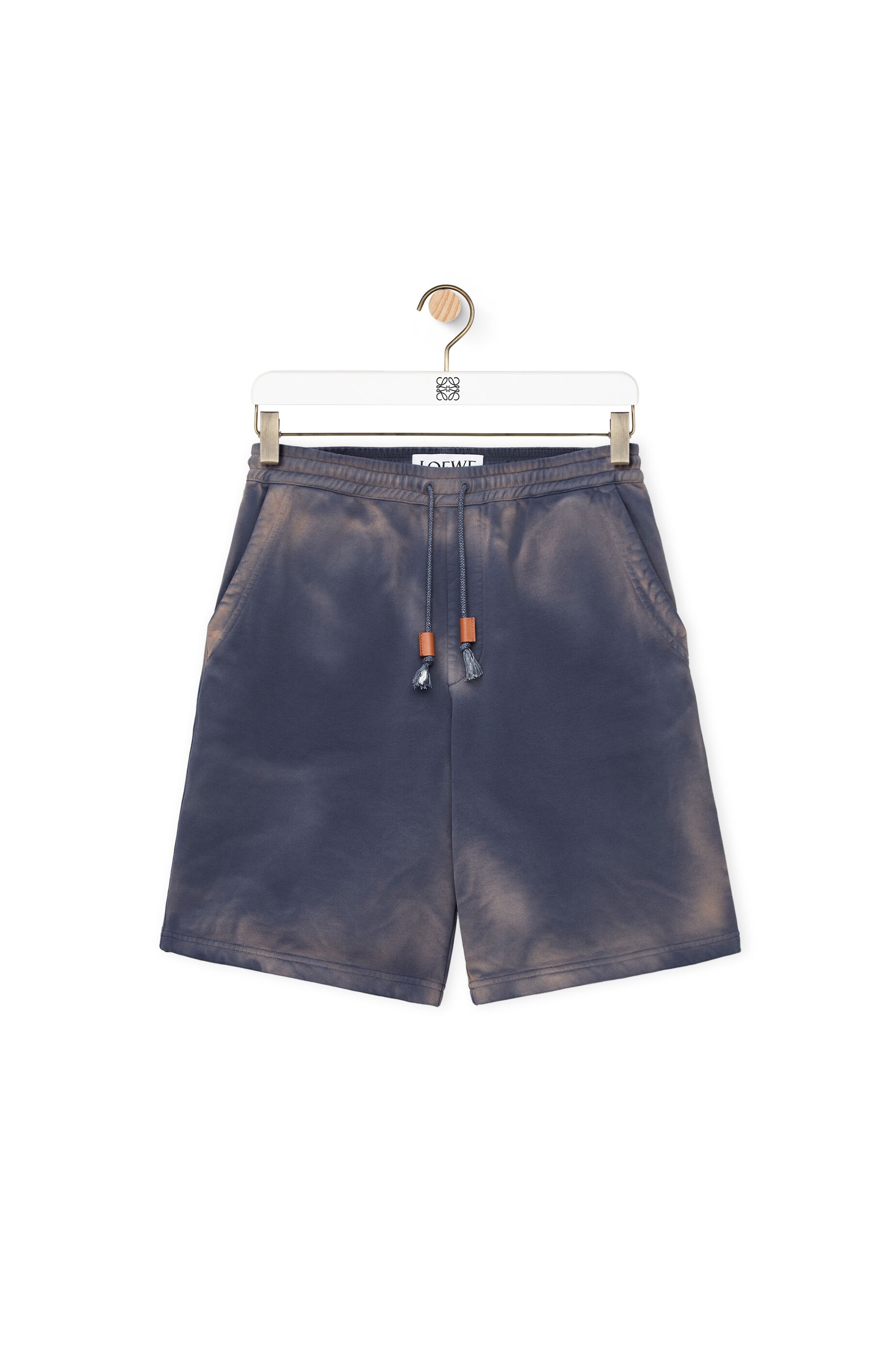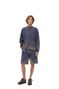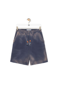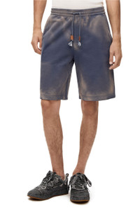 Shorts in lightweight cotton fleece with all-over hand spray effect, rendering each piece with distinctive features. With elasticated drawstring waist, side pockets and single rear patch pocket. - Regular fit - Dyed on finished garment - Embossed LOEWE leather drawstring tab - Embroidered Anagram Details - Colour: Washed Indigo - Main material: Cotton - Weight: 0.22 kg - Model ID: H526Y27J20 - Made in: Italy