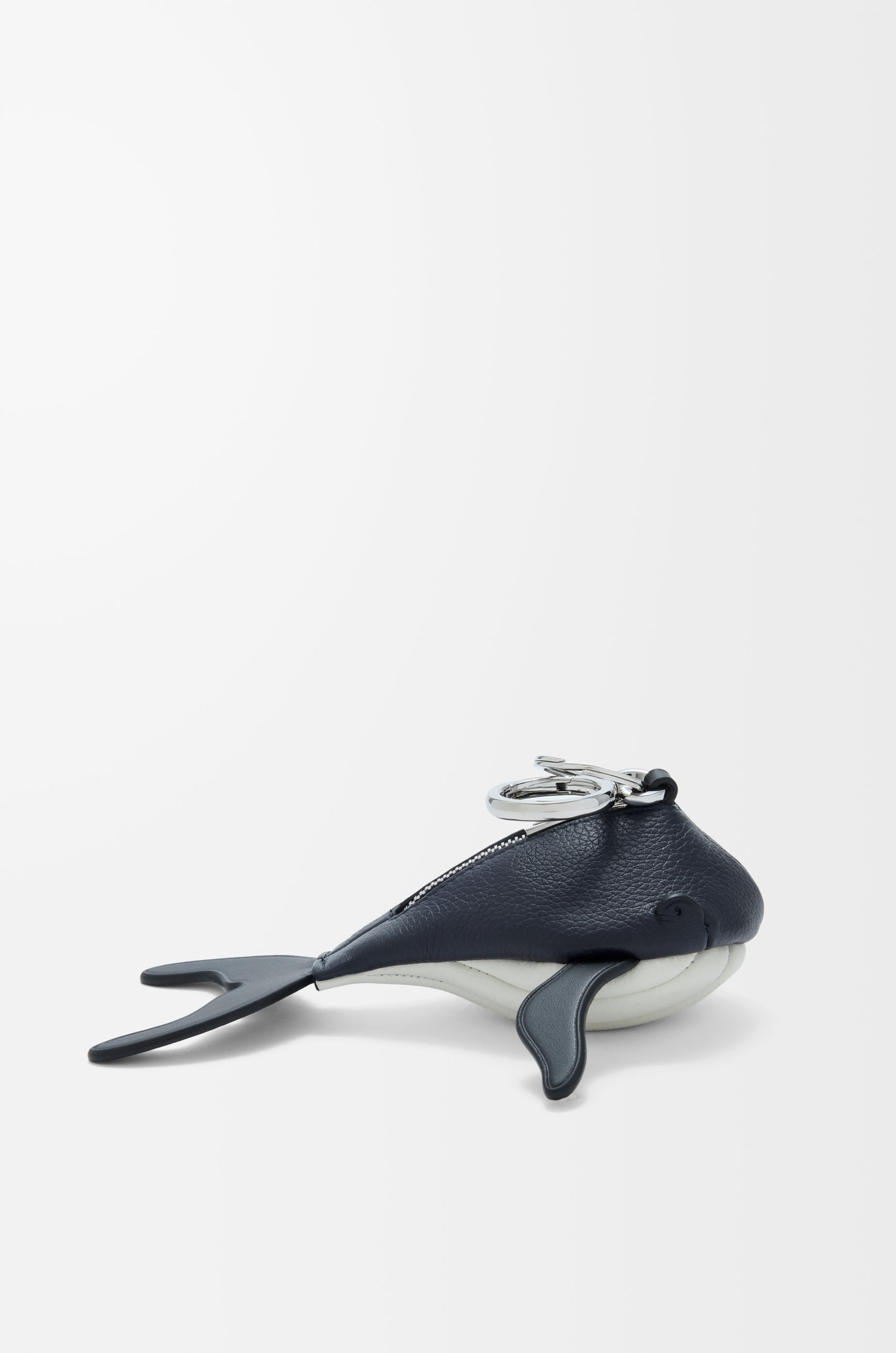 Whale charm in classic calfskin. - Two hoop fastenings - Zip closure - Embossed LOEWE Colour: Midnight Blue/White Metallic colour: Palladium Main material: Classic Calf Weight: 0.06 kg Height: 6 cm Width: 18 cm Depth: 16 cm Made in: Spain
