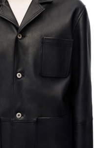Workwear jacket crafted in medium-weight grained nappa lambskin. - Regular fit - Regular length - Notch lapels - Button front fastening - Chest pocket - Two patch pockets - Anagram embossed at the back Details - Colour: Dark Navy - Main material: Nappa - Weight: 1.0 kg - Model ID: H526Y19L96 - Made in: Spain