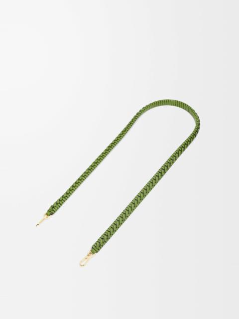 Woven spiral strap in classic calfskin. - Hook fastening Details - Colour : Pecan - Metallic colour : Gold - Main material : Classic Calf - Strap length : 100 cm - Weight : 0.09 kg - Width (cm) : 100 - Depth (cm) : 1.8 - Width (inch) : 39.4 - Depth (inch) : 0.7 - Model ID : C073S48X01 - CIL : - 0010860005 - Made in : Spain