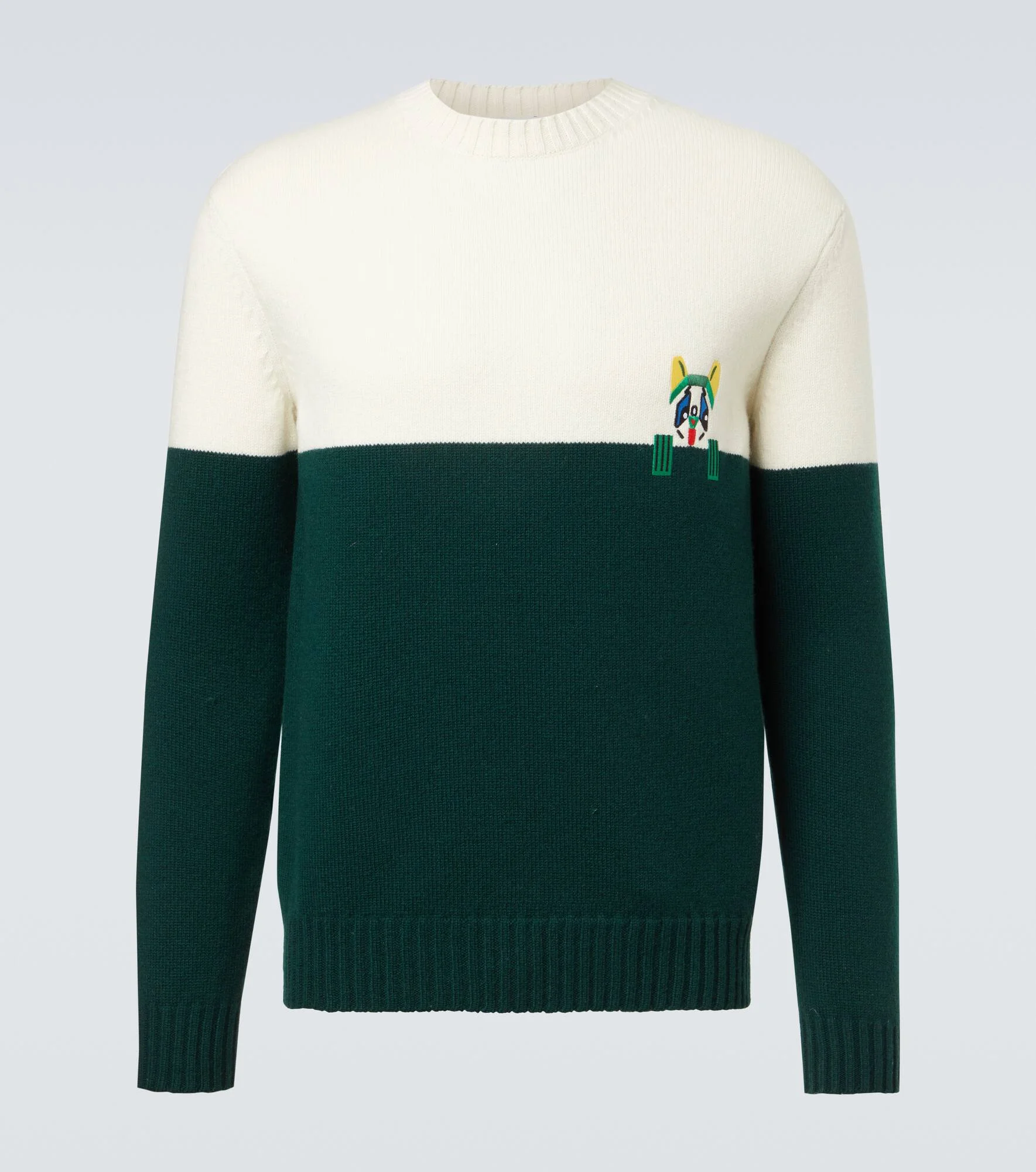 This sweater from Loewe showcases a playful embroidered motif inspired by the works of English artist Louis Wain. Meticulously knitted from soft wool, the style features a colorblocked pattern and is complete with a crewneck. Product Details - Material: 99% wool, 1% polyamide - Care instructions: dry clean - Made in Italy - Designer color name: White/Green - Item color: white, green - Embroidery: 100% polyester - Collar: crewneck - Cuff: ribbed - Hem: ribbed - Item number: P01123309 Size & Fit - True to size - Straight fit - Slightly stretchy fabric - Falls to the hip - Height of model is 192cm-75.5" and wears a size L