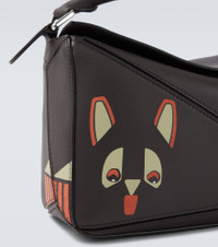 The Puzzle Small tote bag is part of the collaboration between Loewe and Louis Wain. The distinct leather design features motifs inspired by the latter's "Futurist Cats" porcelain vase series. Product Details - Material: calf leather - Lining: cotton - Made in Spain - Color: black - Designer color name: Charcoal - Item color: black - Top handle, Detachable shoulder strap - Internal details: single compartment - Closure: zipped top - Zipped back pocket - Item number: P01123432 Size & Fit - Height 15,5cm-6" - Width 24cm-9.5" - Depth 10cm-4" - Length of handle 32cm-12.5" - Adjustable shoulder strap - Min. length shoulder strap 79cm-31" - Max. length shoulder strap 114cm-45"