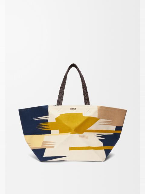 The Puzzle Fold's lightweight geometric structure is designed to fold completely flat, making it a perfect tote to travel with.This XL version is crafted in classic calfskin enriched with leather marquetry, carved-out details, carpet stitching, embroidery, fringes and rhinestones. This bag is part of a special Richard Hawkins x LOEWE collaboration. - Shoulder or hand carry - Suede lining - Gold embossed LOEWE Colour: Dark Burgundy/Multicolor Main material: Calfskin Handle drop: 26 cm Weight: 0.75 kg Height: 41 cm Width: 42 cm Depth: 18 cm Made in: Spain