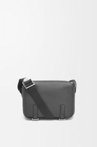 The Military Messenger has a zip top compartment as well as an additional front compartment with a fold over flap. This version is crafted in soft grained calfskin. - Shoulder or crossbody carry - Adjustable shoulder strap finished with LOEWE engraved metal slider - Magnetic closure - Internal slip pocket - Herringbone cotton canvas lining - Embossed Anagram Details - Colour: Anthracite - Metallic colour: Palladium - Main material: Soft Grained Calf - Strap length: 113 - 156 cm - Weight: 0.6 kg - Height (cm): 18 - Width (cm): 23 - Depth (cm): 9 - Height (inch): 7.1 - Width (inch): 9.1 - Depth (inch): 3.5 - Model ID: B553A72X22 - CIL: 0010768539 - Made in: Portugal
