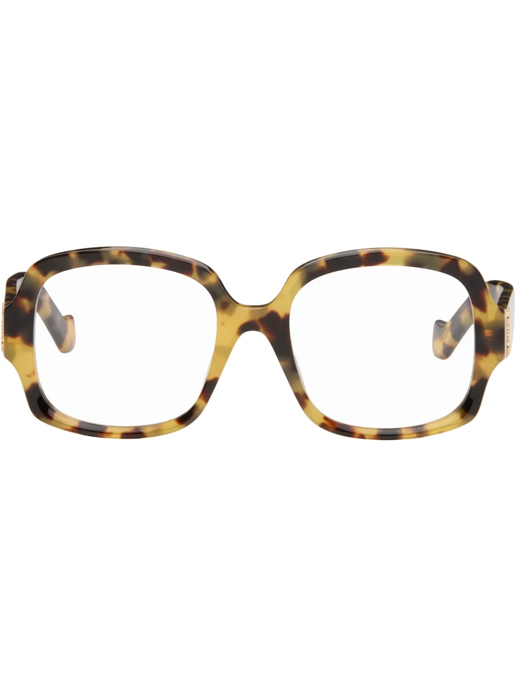 Square semi-transparent tortoiseshell acetate-frame optical glasses. · Integrated nose pads · Logo hardware at temples · Exposed core wires · Includes case · Size: 53.19 140 Supplier color: Havana/Other Acetate. Made in Italy 261677M133012
