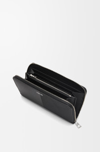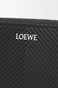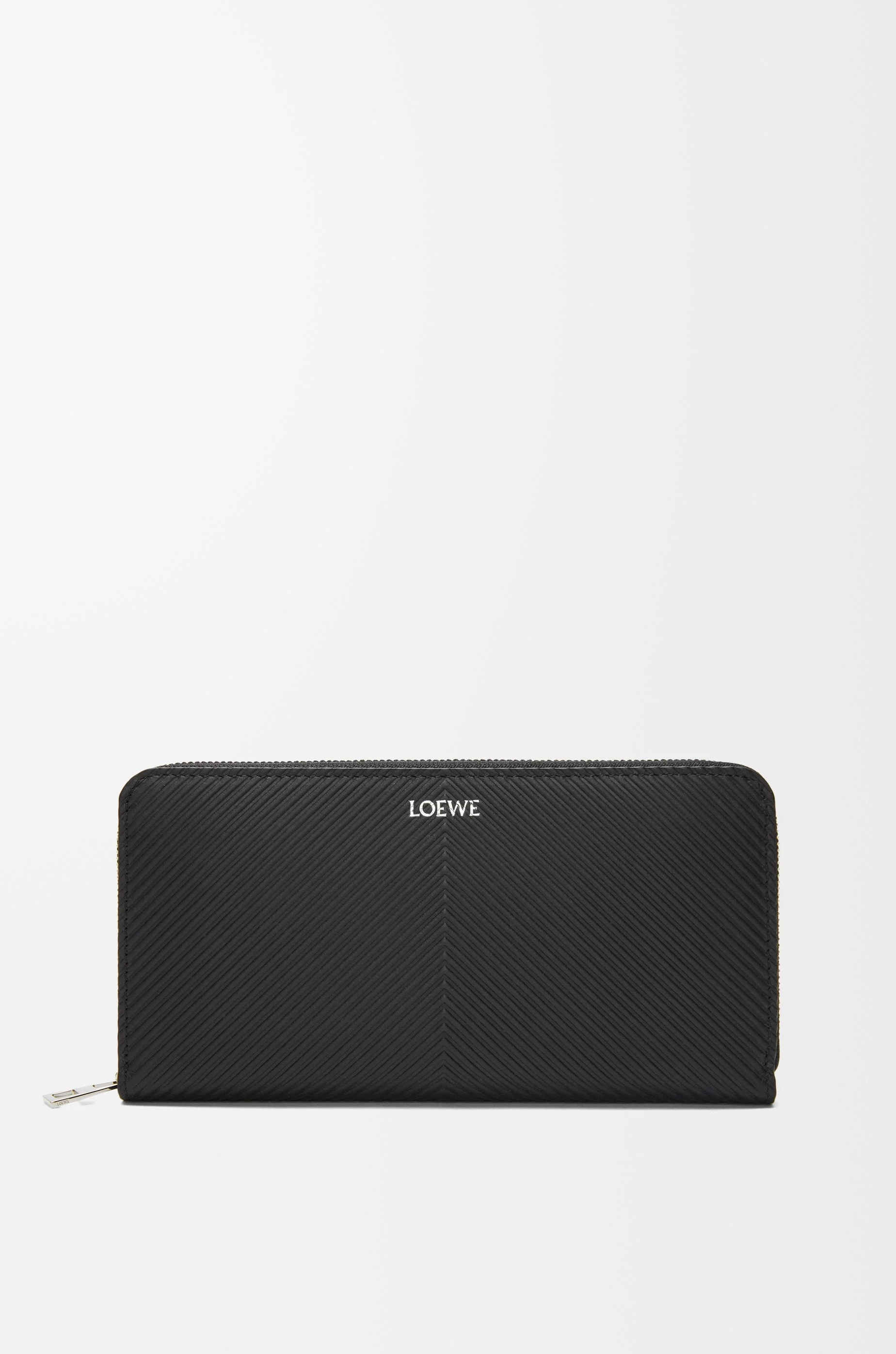 Zip around wallet in classic calfskin embossed with a chevron pattern. - Twelve card slots and two large pockets for notes - Two gusset sections - Zip coin compartment - Calfskin lining - Silver embossed LOEWE Details - Colour : Black - Metallic colour : Palladium - Main material : Classic Calf - Weight : 0.2 kg - Height (cm) : 10 - Width (cm) : 19 - Depth (cm) : 2 - Height (inch) : 3.9 - Width (inch) : 7.5 - Depth (inch) : 0.8 - Model ID : C779T12X01 - CIL : - 0011110384 - Made in : Spain