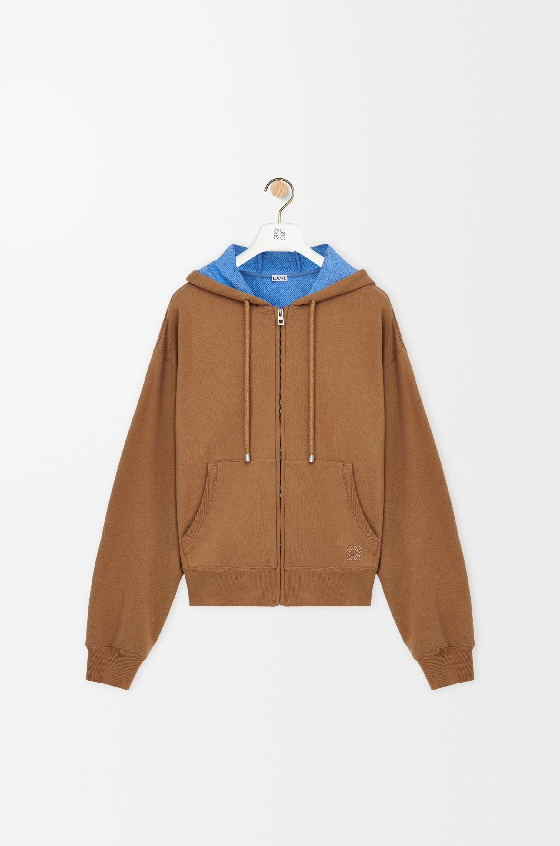 Hoodie in medium-weight bicolor loopback cotton fleece. - Regular fit, regular length - Hooded collar - Zip front fastening - Ribbed cuffs and hem - Anagram embroidery placed on the chest Colour: Beige/Blue Main material: Cotton Weight: 1.1 kg Made in: Portugal Materials & care Main Material: 100% cotton