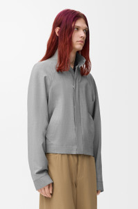 Jacket in lightweight tailoring wool featuring a high neck with snap button fastening and raglan sleeves. - Regular fit, regular length - Concealed snap button and zip front fastening, buttoned cuffs - Diagonal welt pockets - Anagram embroidery placed on the chest Colour: Light Grey Main material: Wool Weight: 0.6 kg Made in: Italy Materials & care Main Material: 100% wool